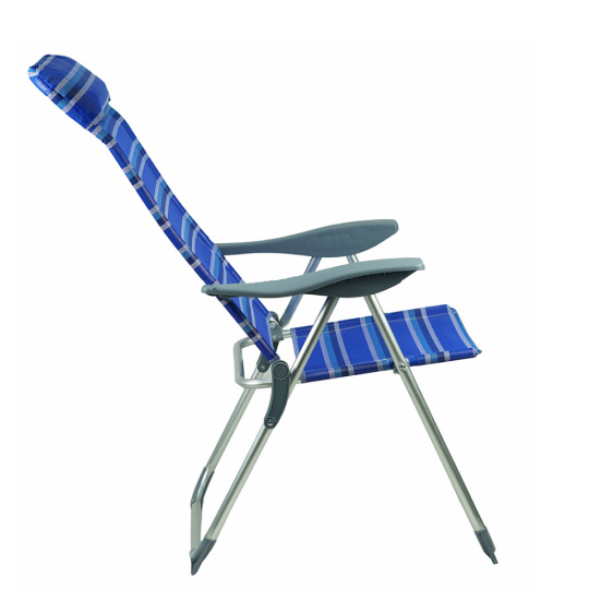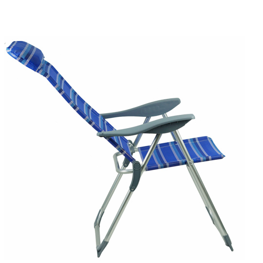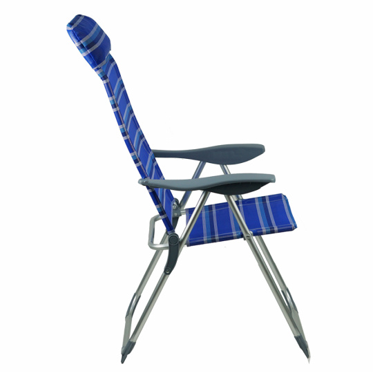 Materiál: hliník/plast/polyester Barva: modrá/šedá Rozměry (ŠxHxV): 58x69/103x82/109 cm Rozměry složené křeslo (ŠxHxV): 99x58x8 cm Výška sedu: 42 cm Hloubka sedu: 36 cm Šířka sedu: 45 cm Šířka opěrky zad: 44 cm Výška opěrky zad: 77 cm Výška opěrky na ruku: 61 cm Nosnost: 90 kg Hmotnost: 3,75 kg Polohovací 5 poloh Plastové područky Plastové krytky na spodní konstrukci Vhodné na zahradu, terasu, k bazénu Jednoduchá manipulace a přesun Dodáváno v monte