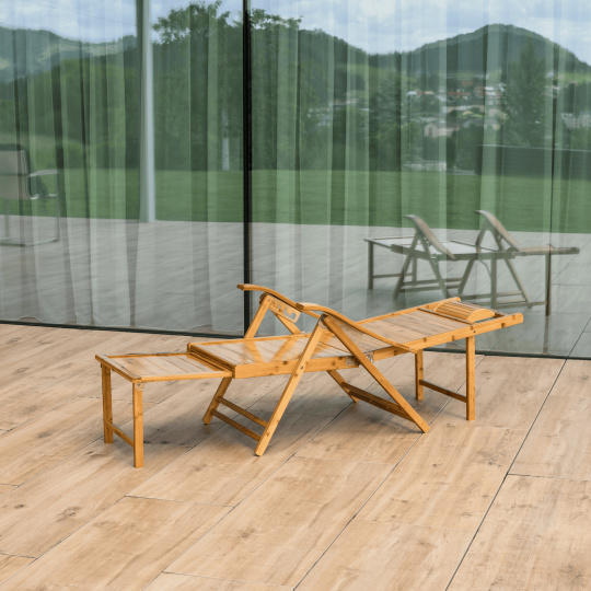 Zahradní polohovací křeslo, přírodní, bambus, VARDON