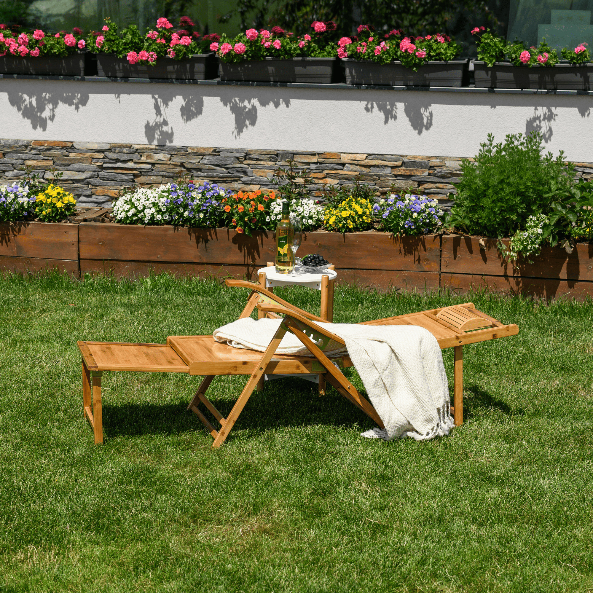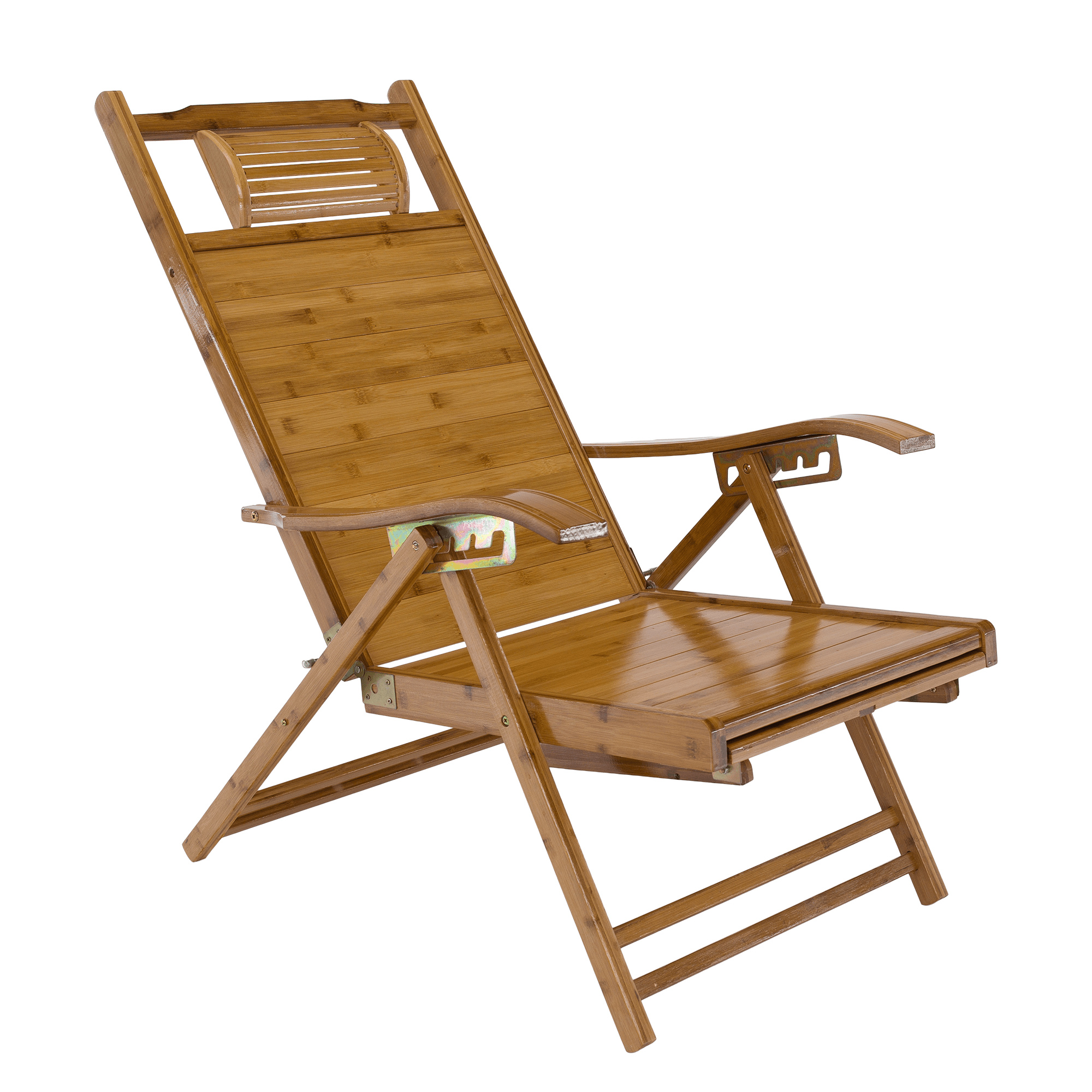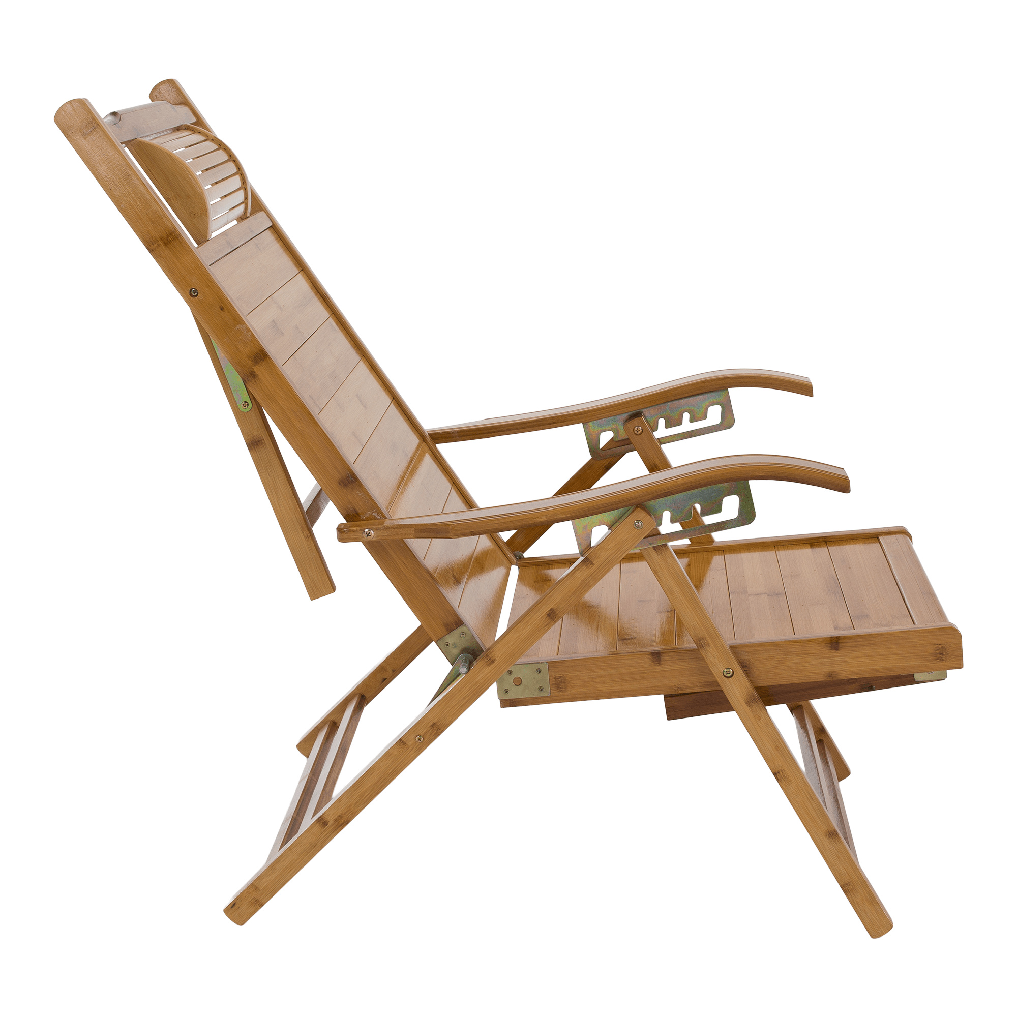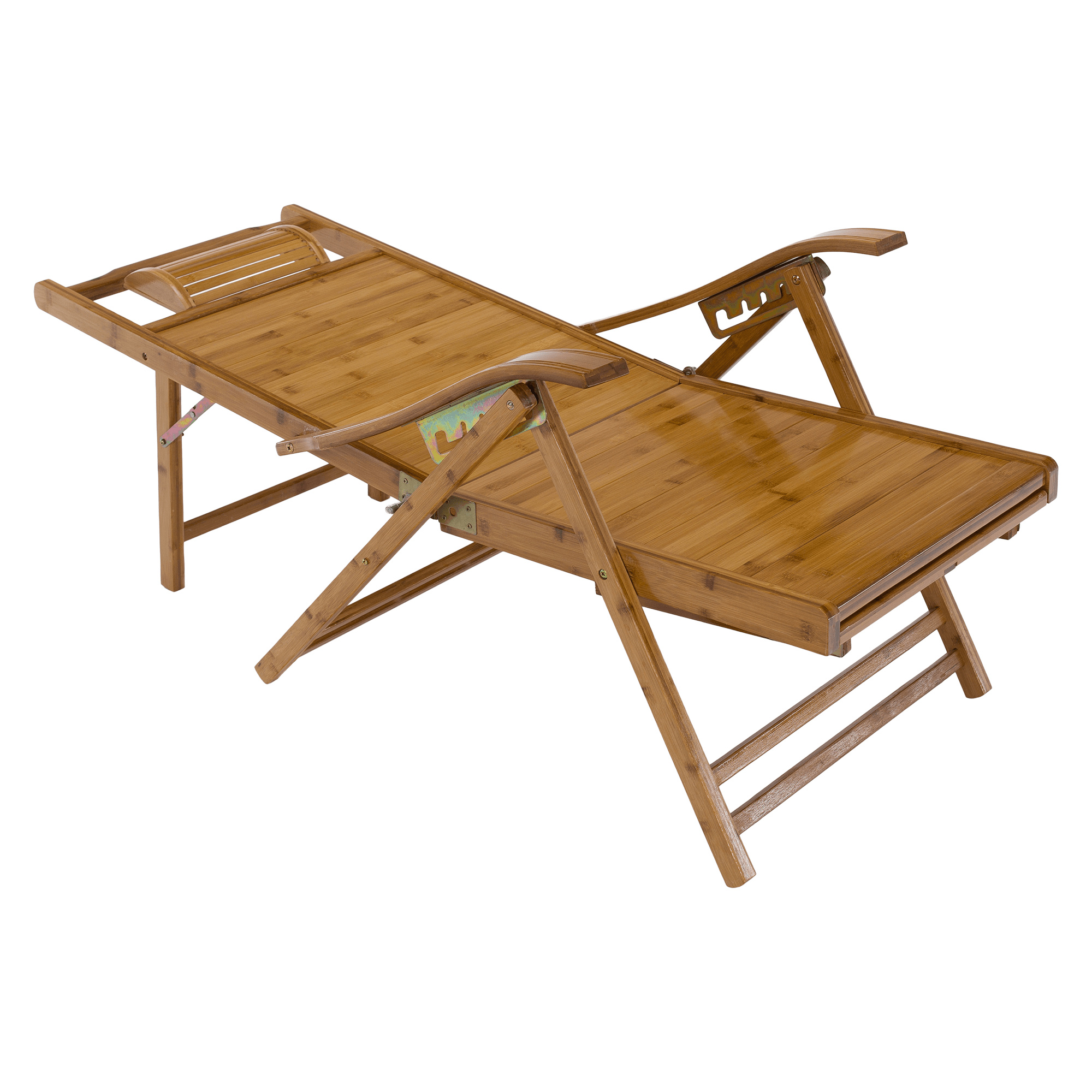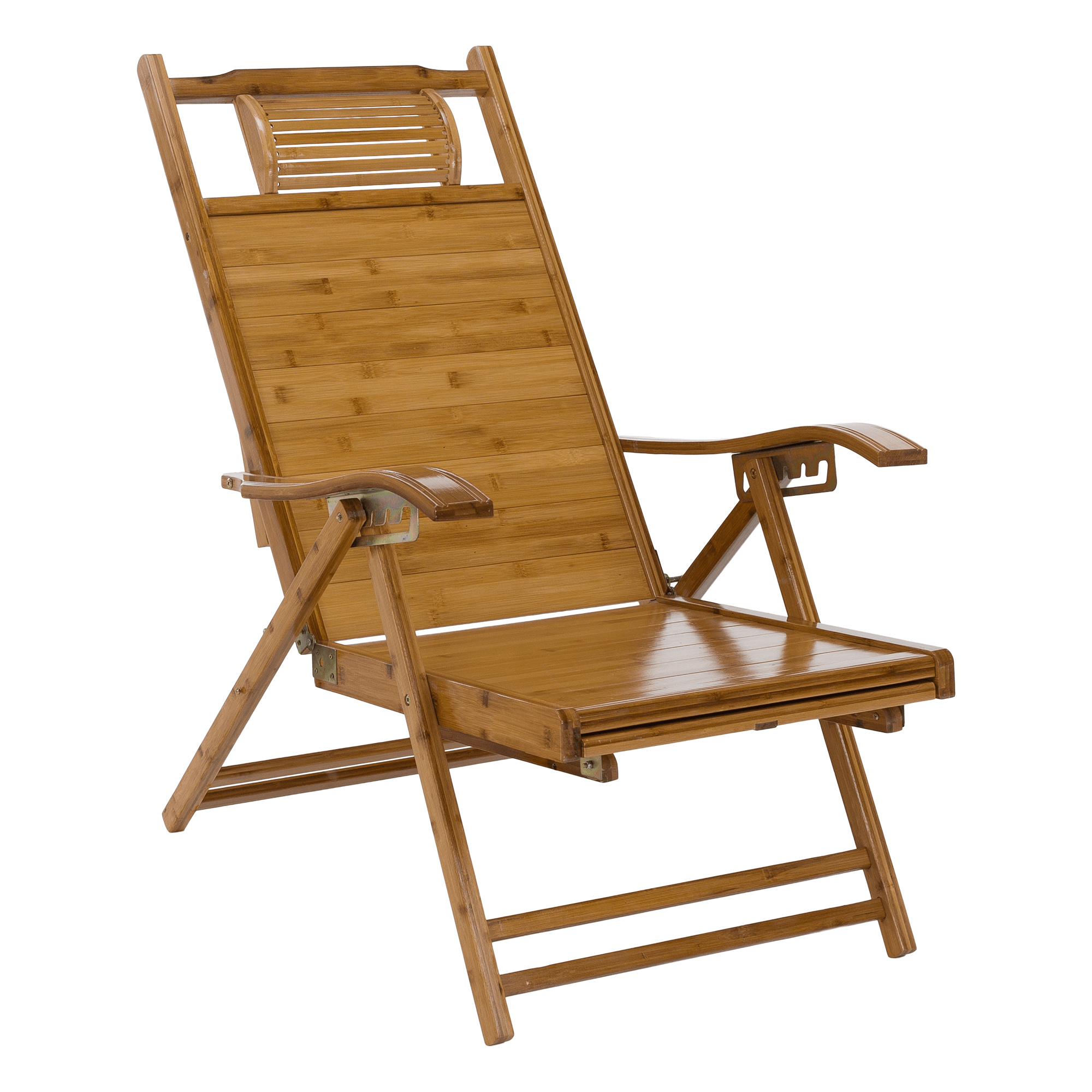 Materiál: masivní bambusové dřevo Barva: přírodní Rozměry (ŠxHxV): 61x85-169x43-100 cm Výška sedu: 36 cm Hloubka sedu: 52 cm Šířka sedu: 48 cm Výška zádové opěrky: 78 cm Šířka zádové opěrky: 48 cm Nosnost: 100 kg Hmotnost: 13 kg Zahradní Skládací Polohovací 5 úrovní polohování Opěrka hlavy S područkami Křeslo Lehátko S výsuvnou podnoží Rozměry podnož (ŠxH): 43x38 cm Praktické Moderní design Dodáváno v montě