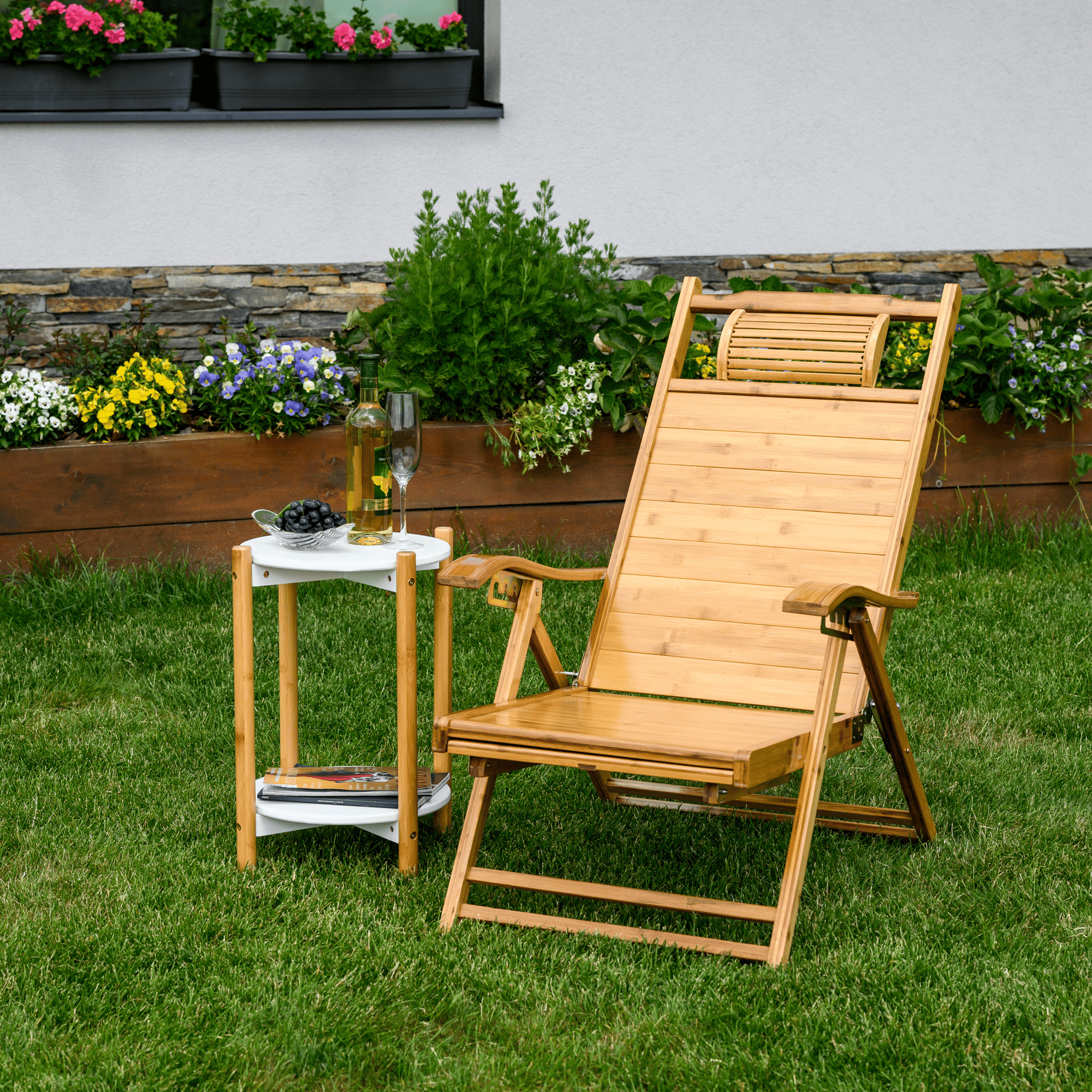 Zahradní polohovací křeslo, přírodní, bambus, VARDON