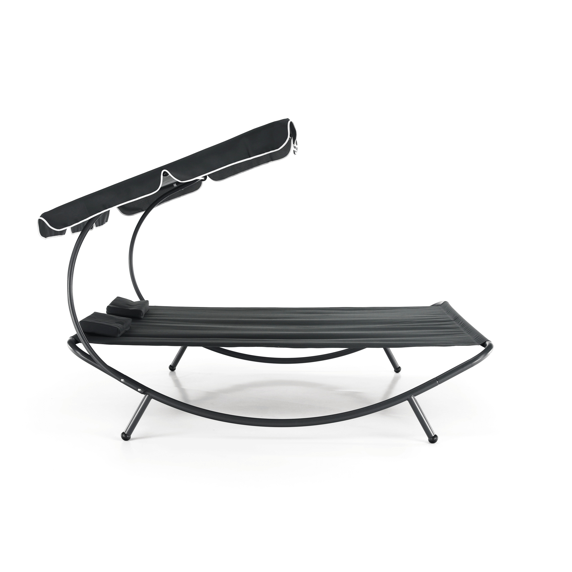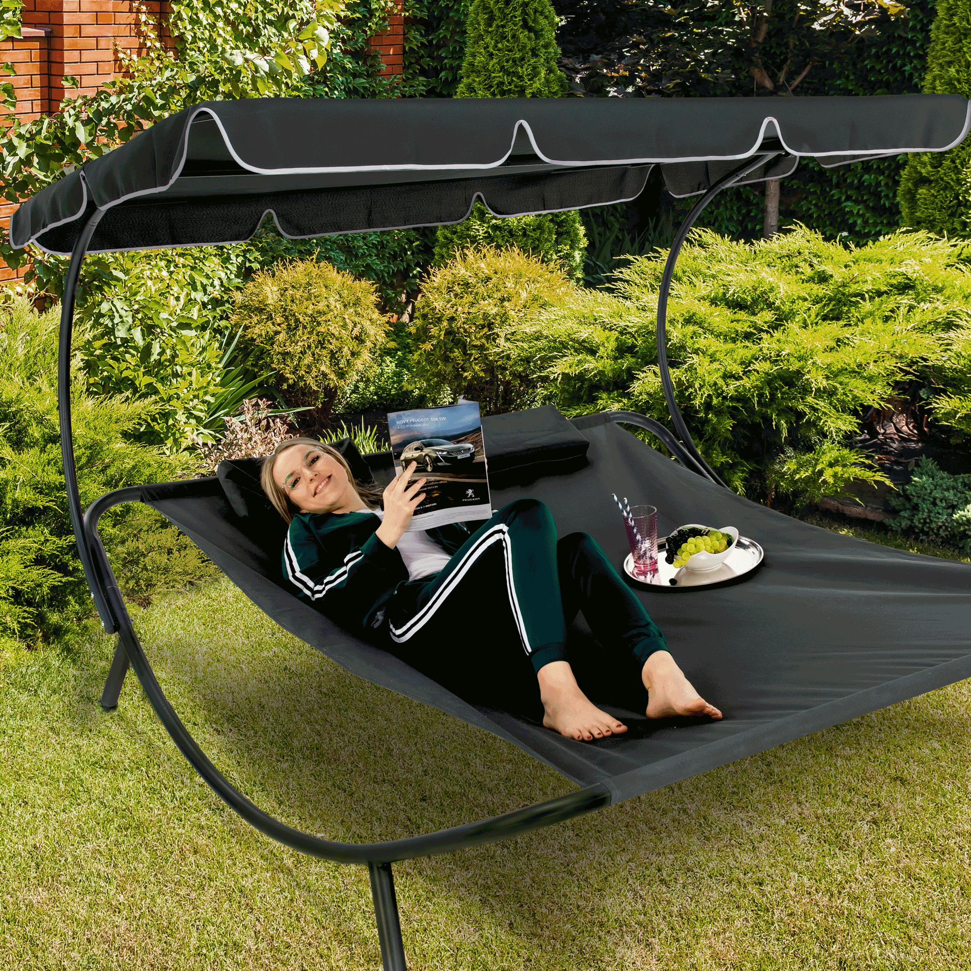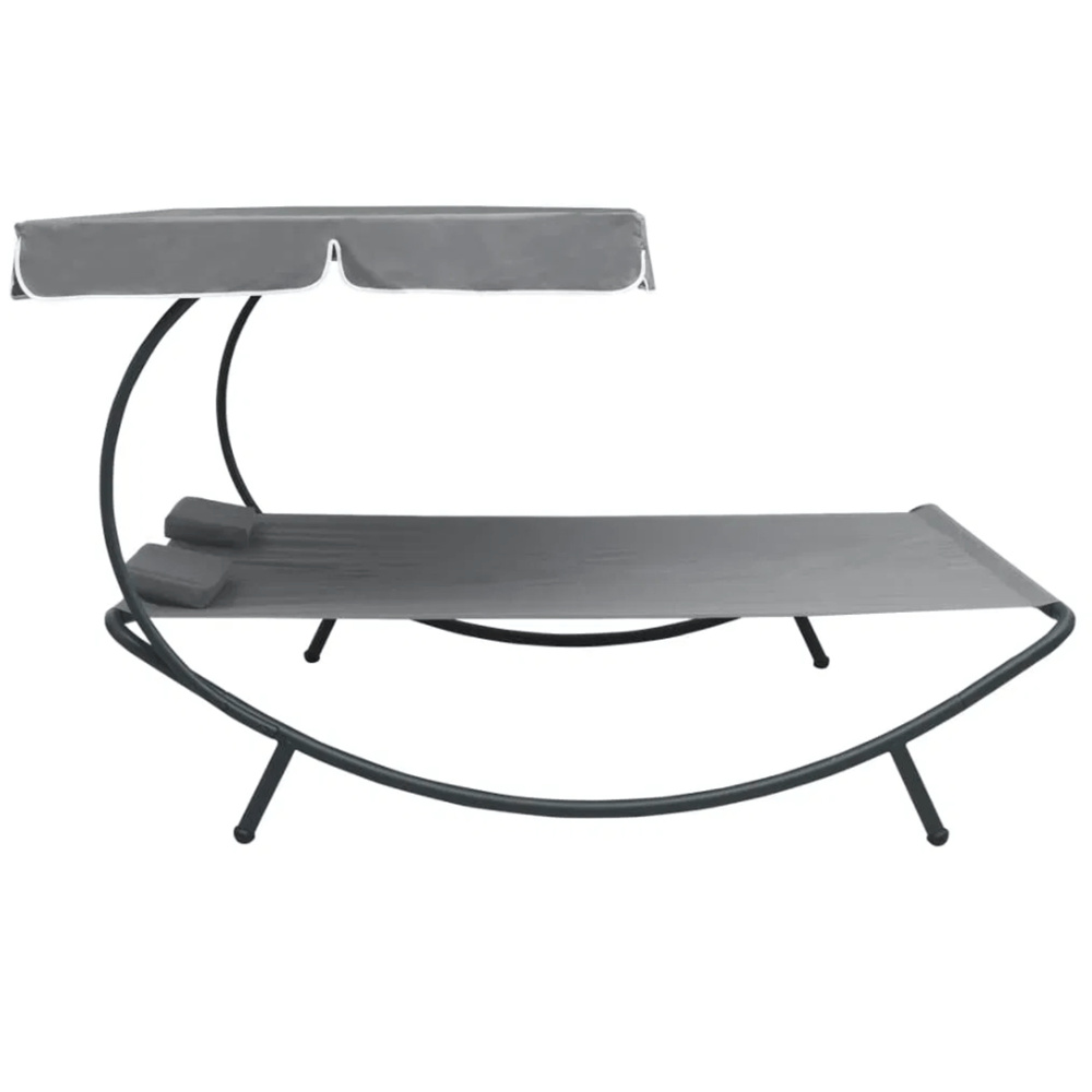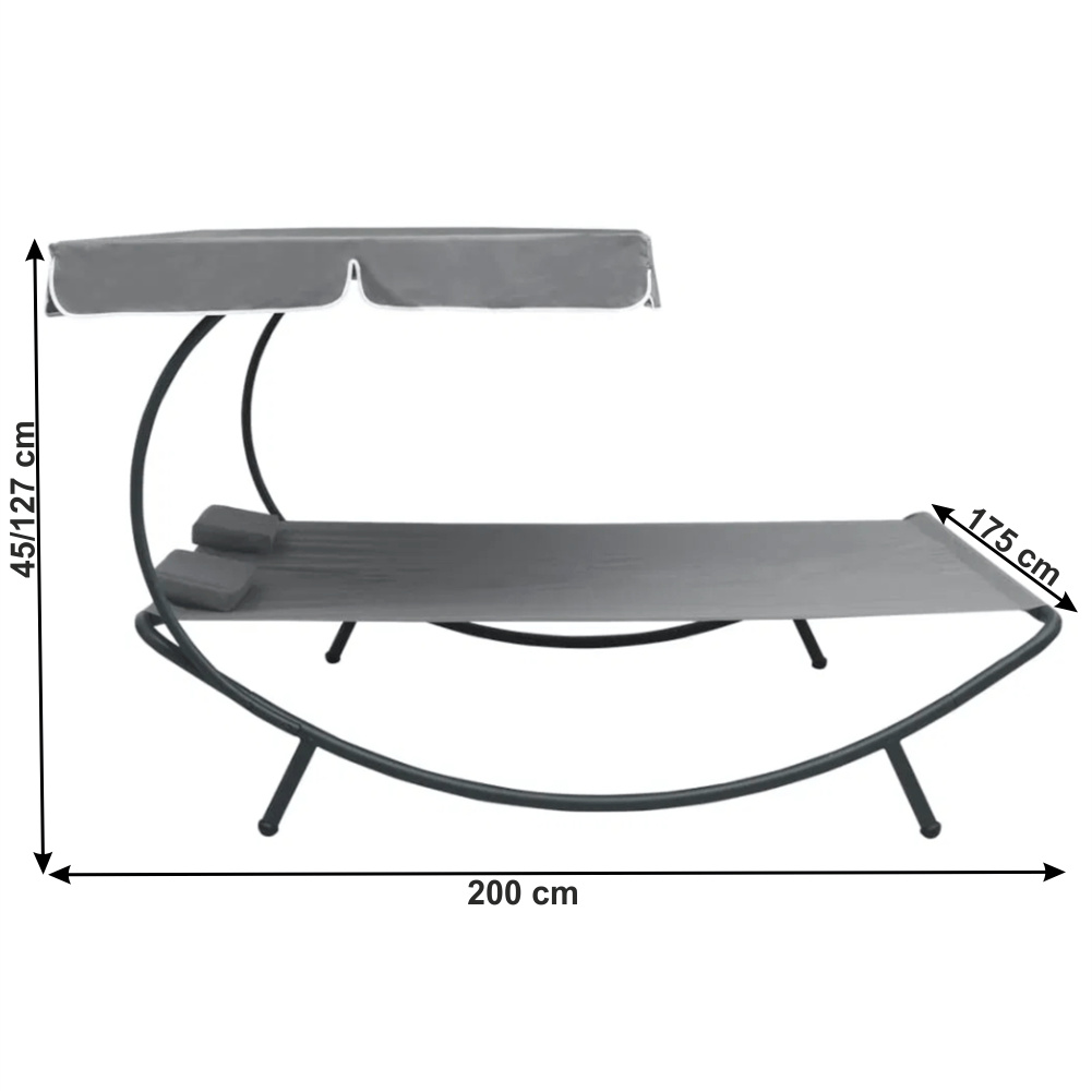 Materiál: ocel / polyester Barva: šedá Rozměry (ŠxHxV): 204x180x147 cm Plocha na spaní (ŠxD): 140x204 cm Nosnost: 180 kg Pro dvě osoby S baldachýnem Se dvěma polštáři zahradní moderní Dodávané v demontu