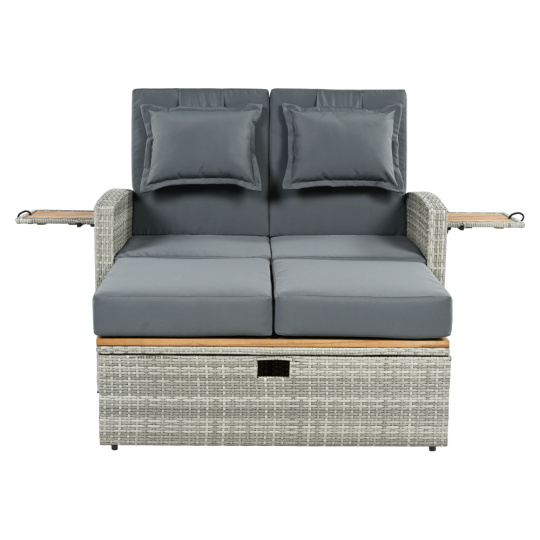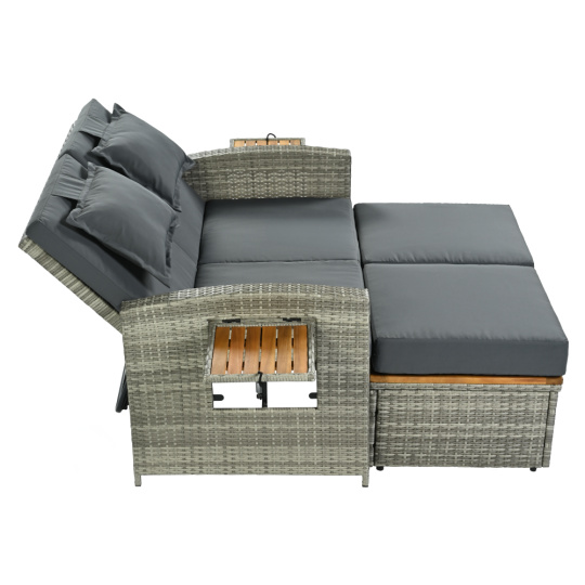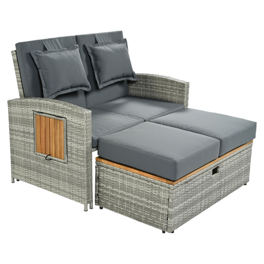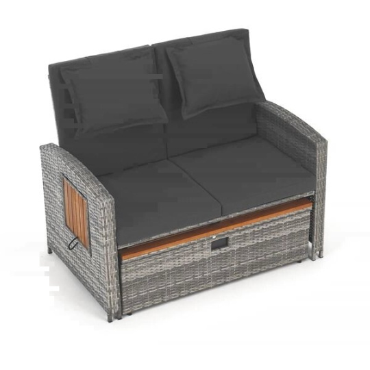 Zahradní ratanová pohovka, šedá/přírodní, MALORY