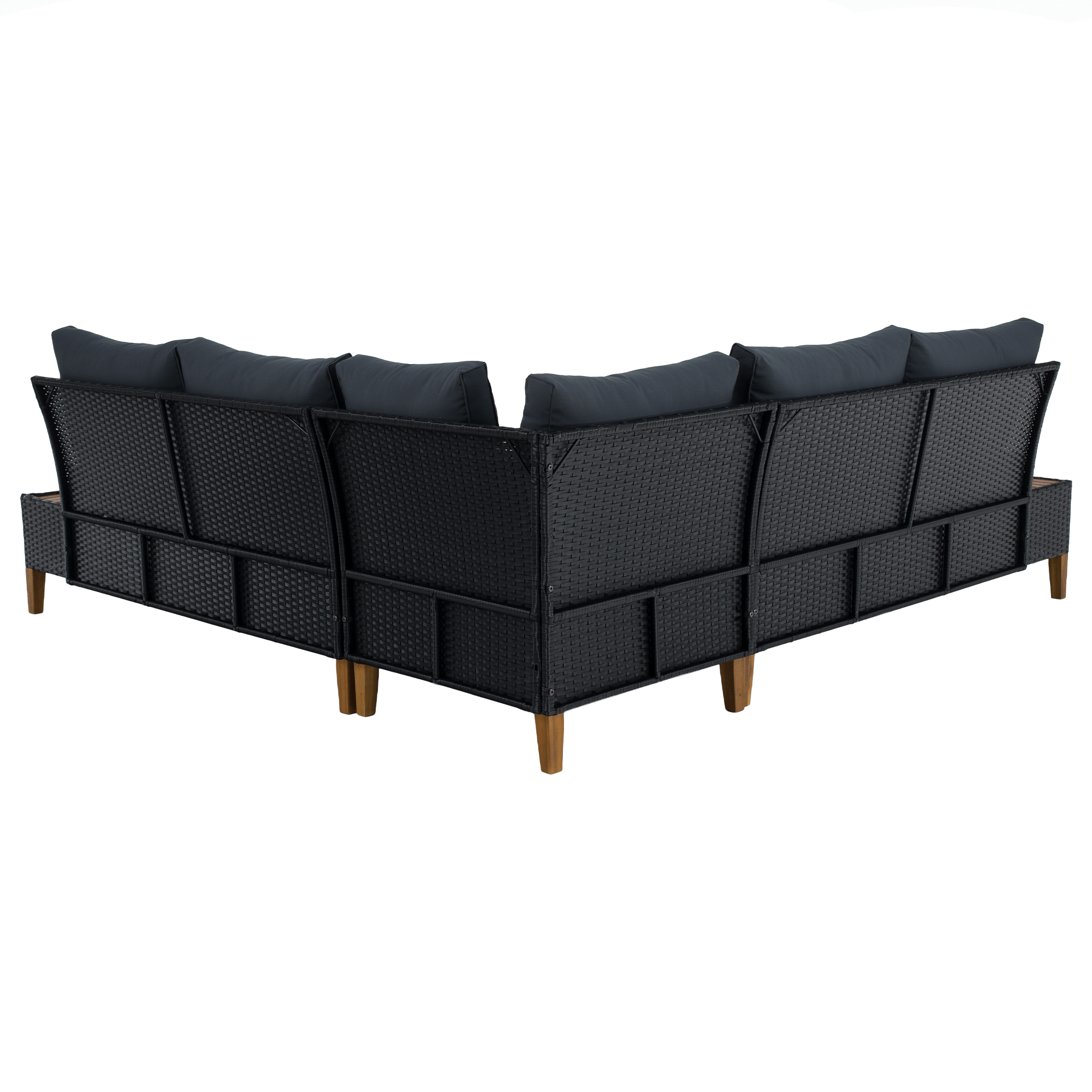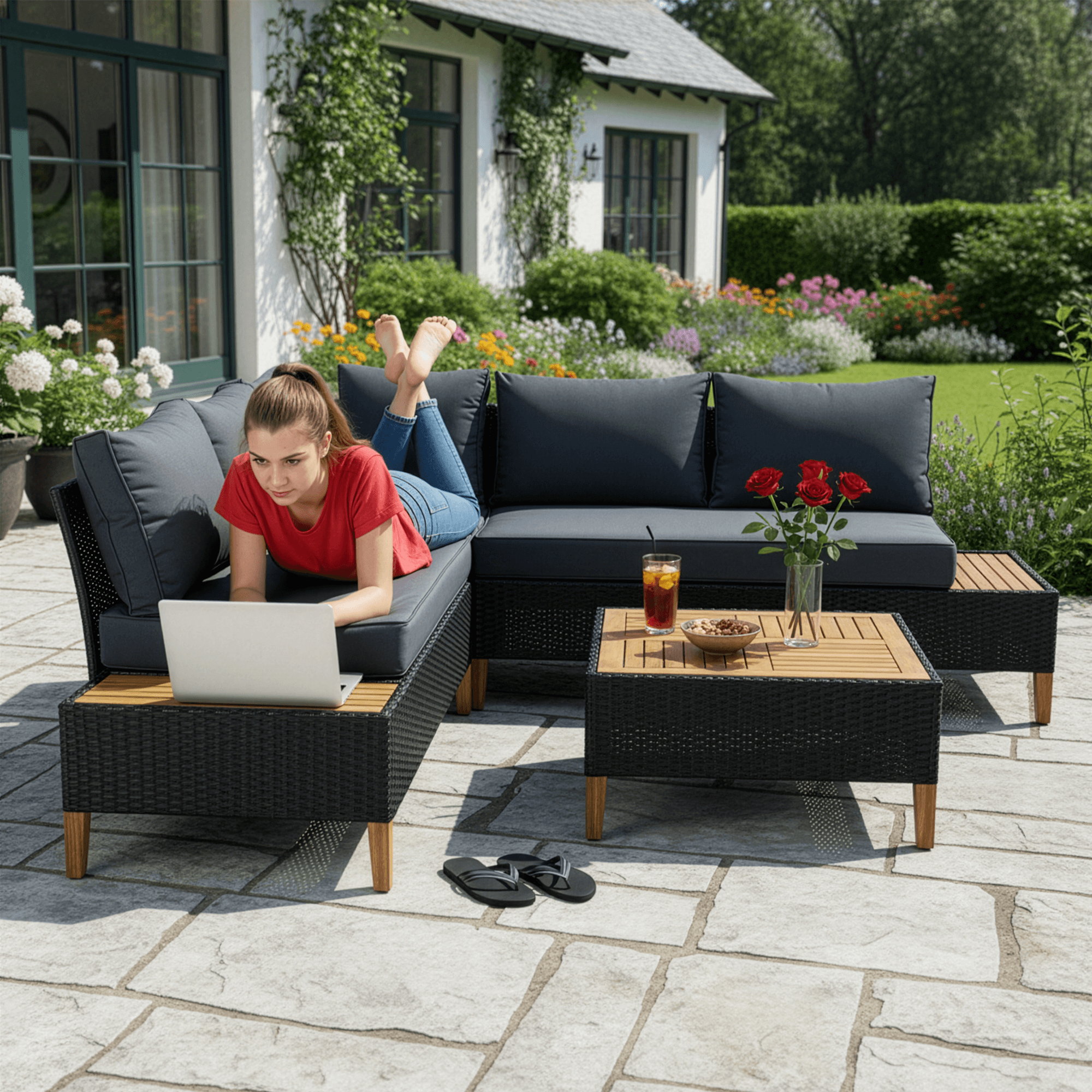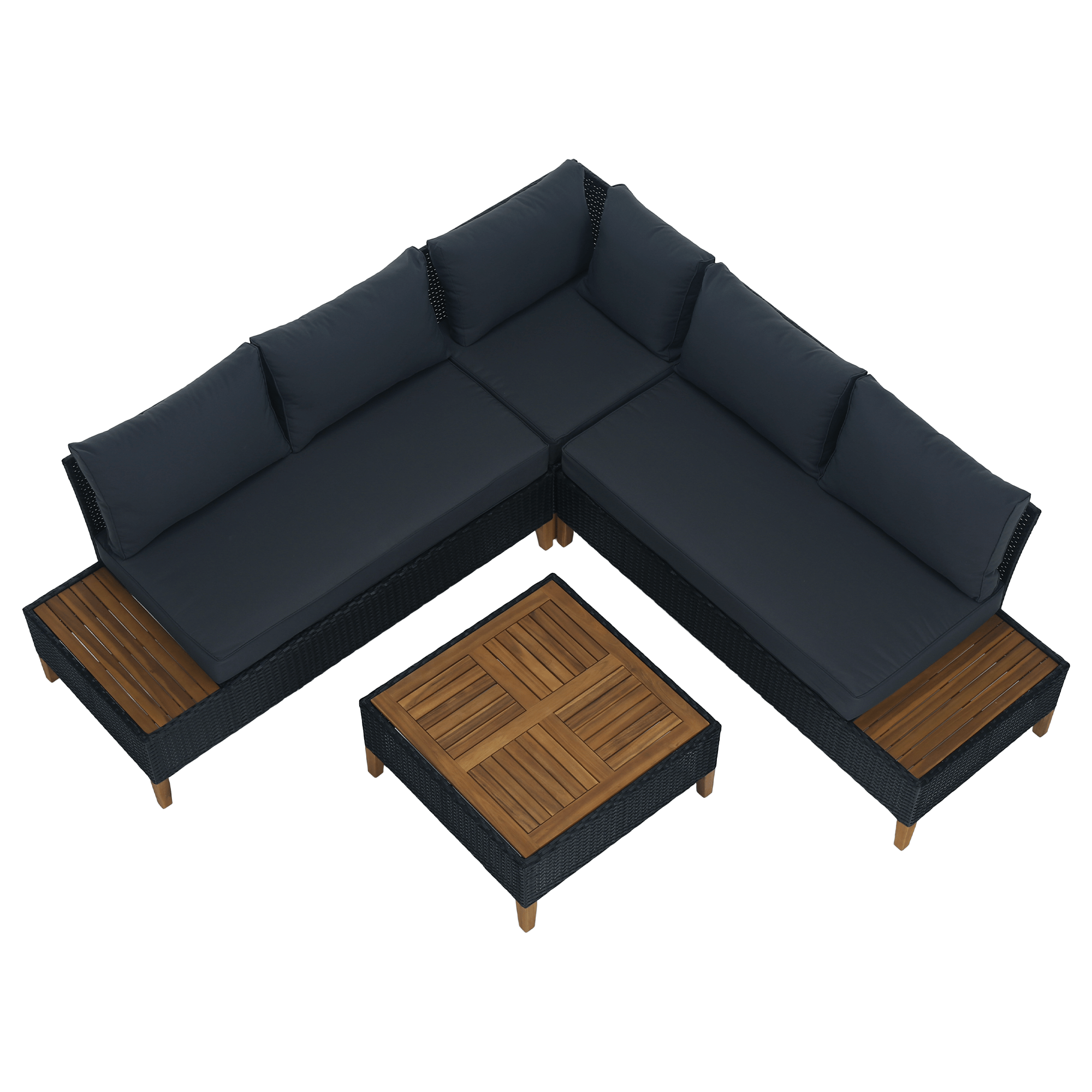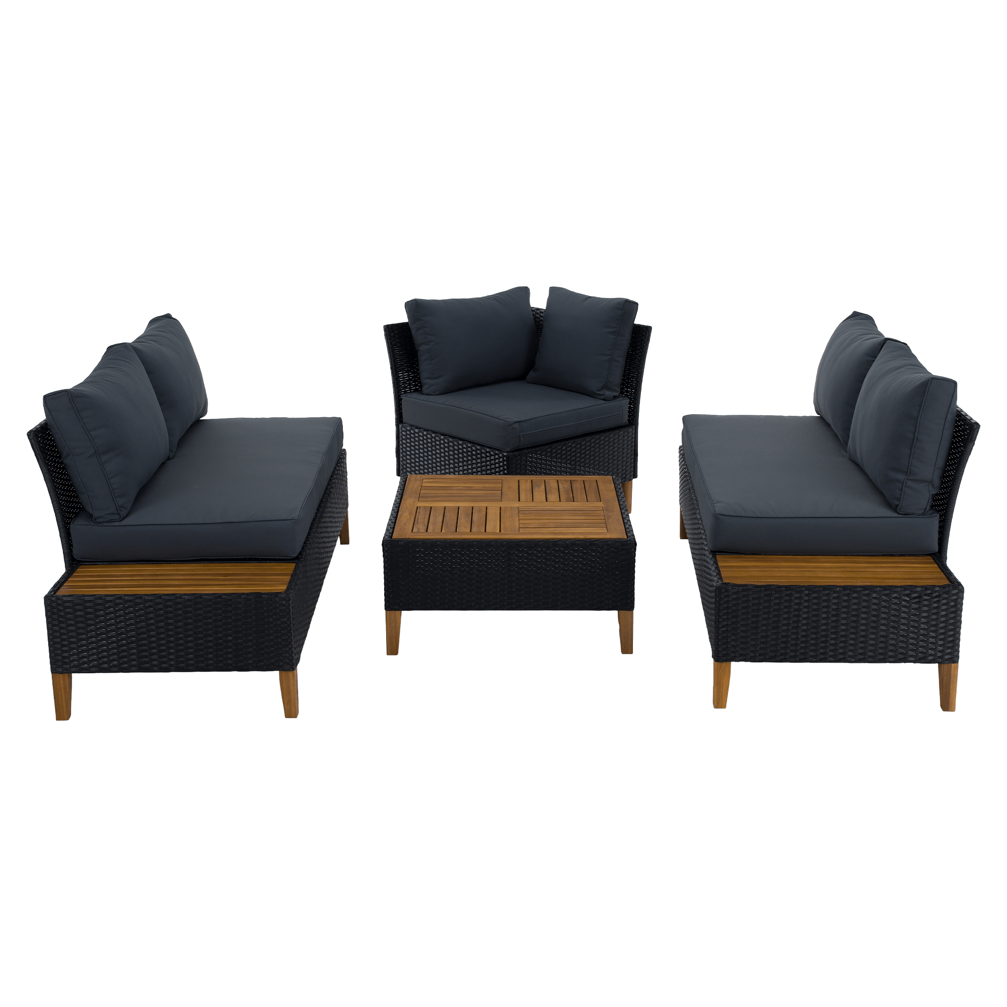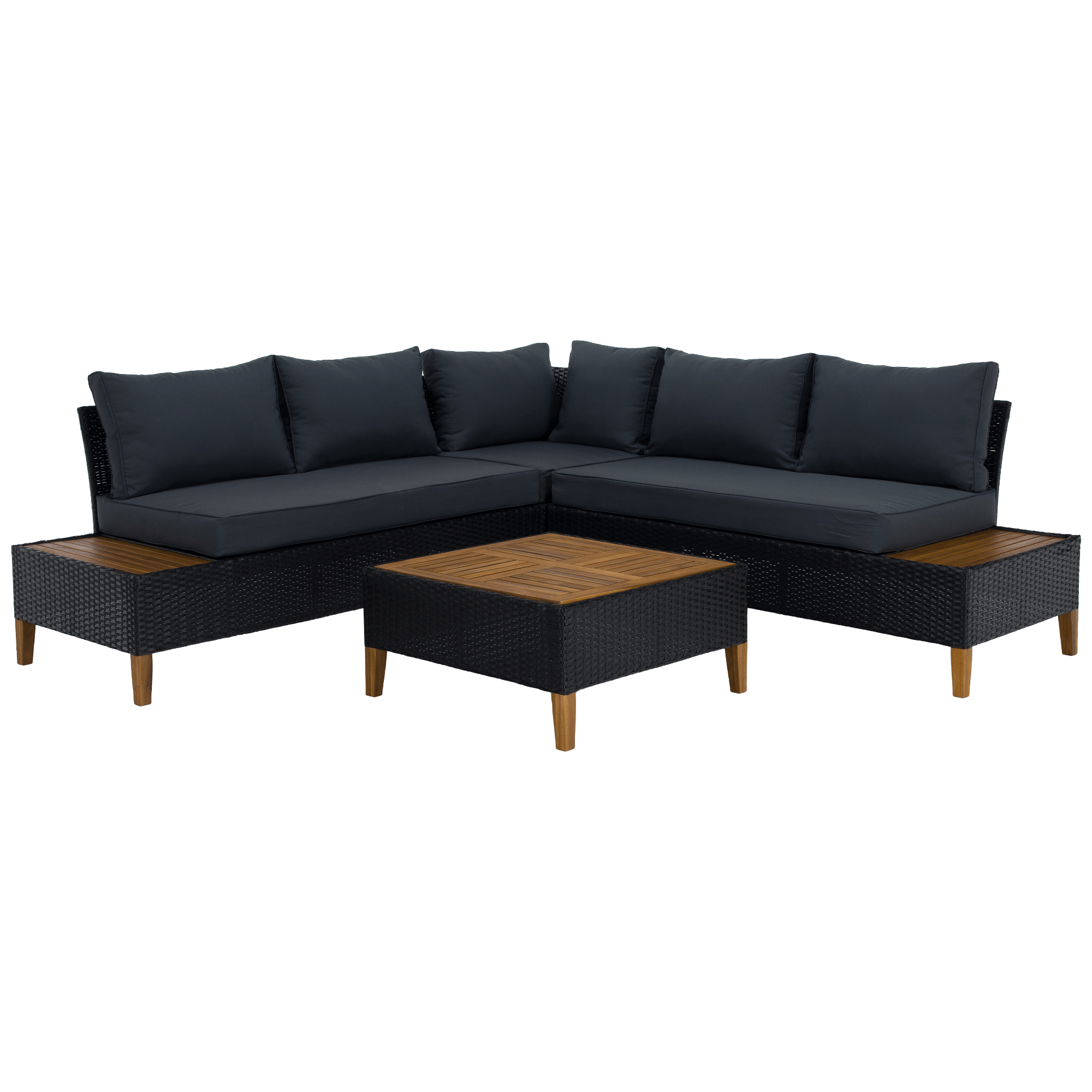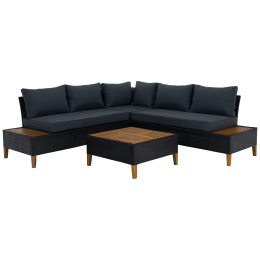 Zahradní ratanový set, akáciové dřevo, černá/šedá/přírodní, MALKOM