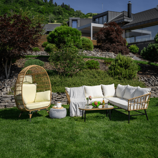Zahradní ratanový set, přírodní/béžová/černá, ARALY