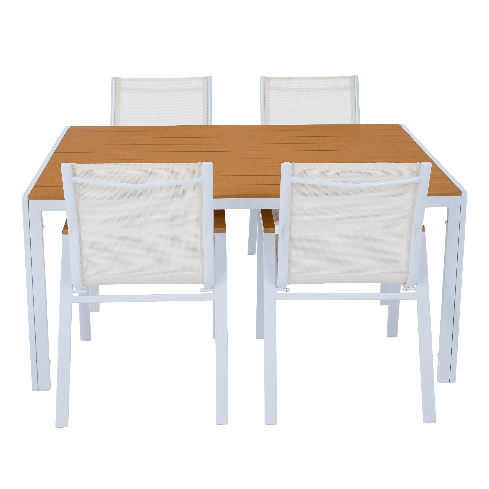 Zahradní stohovatelná židle, bílá ocel/dub, BONTO