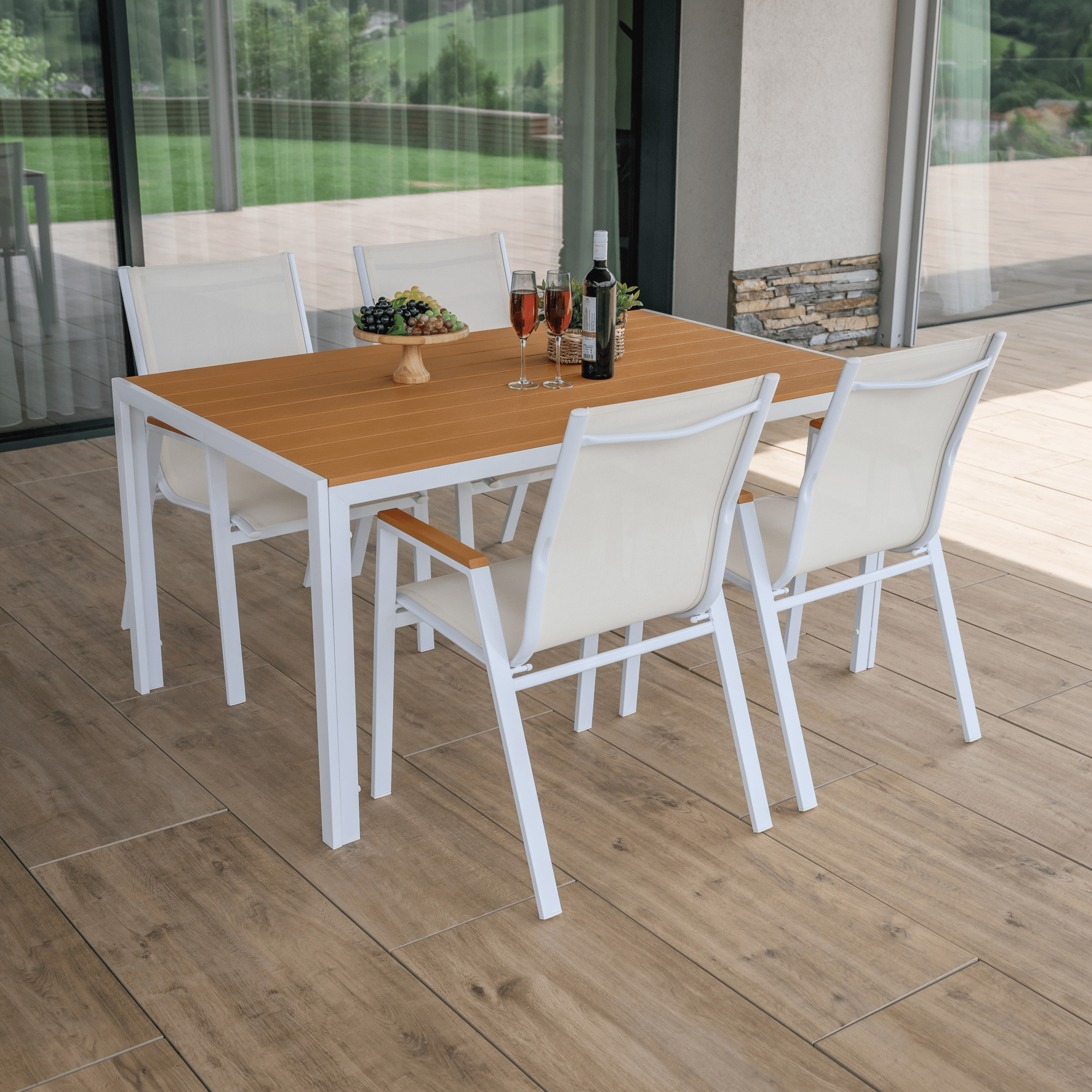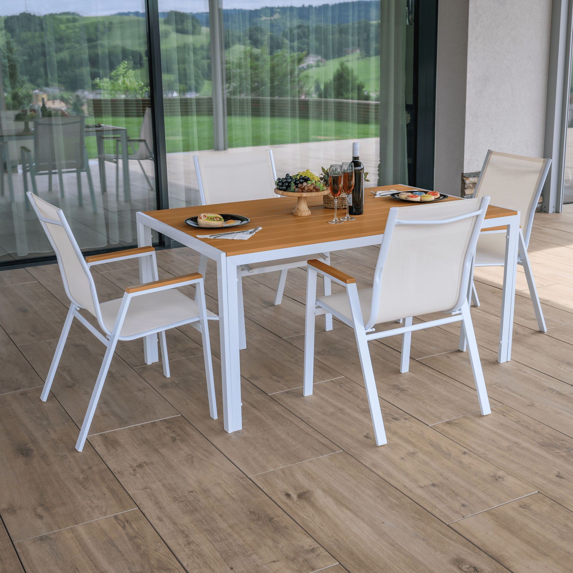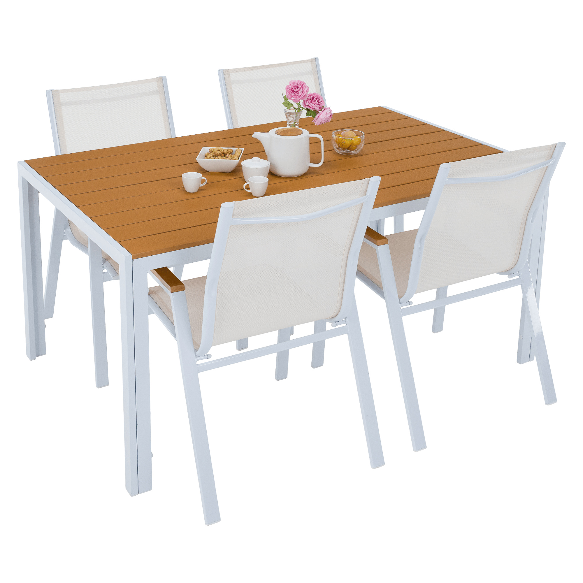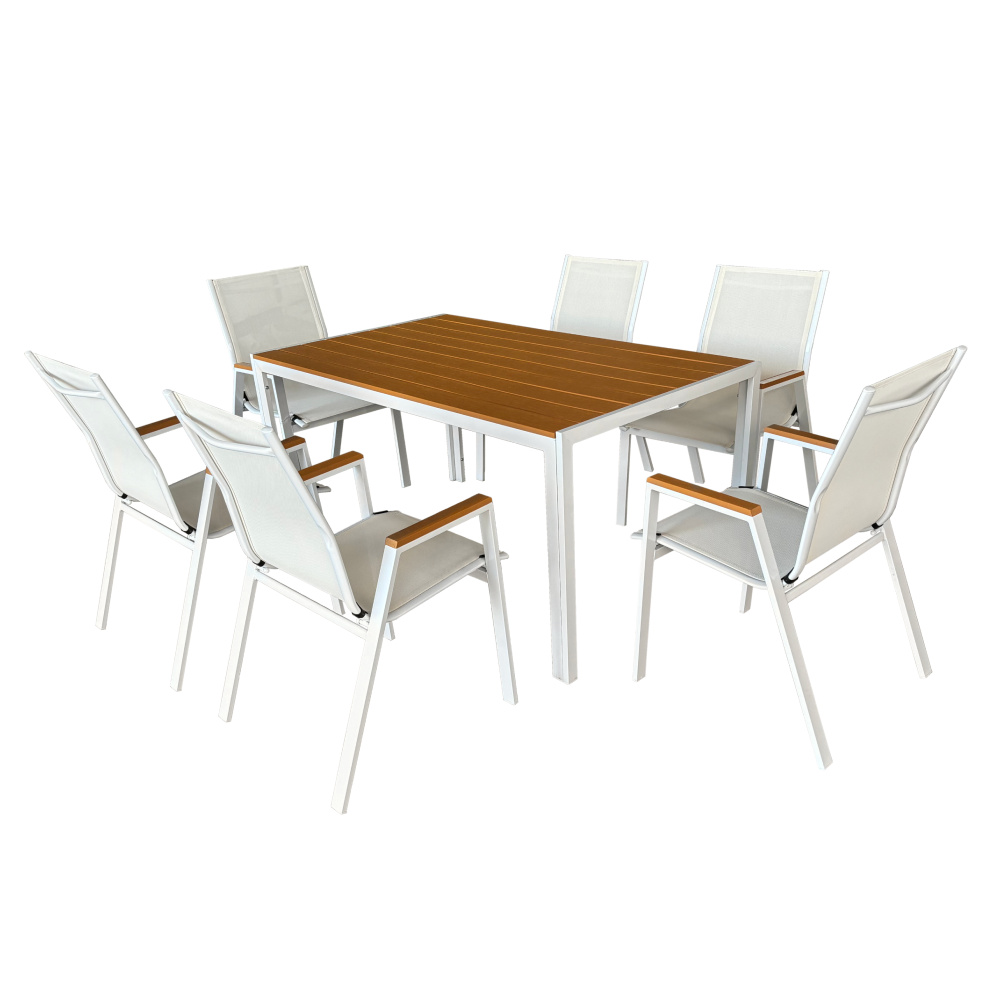 Materiál: ocel/polywood Barva: bílá/dub Rozměry (ŠxHxV): 150x90x73 cm Nosnost: 25 kg Vhodný pro 4-6 osob Jednoduchý Zahradní Dodáváno v monte