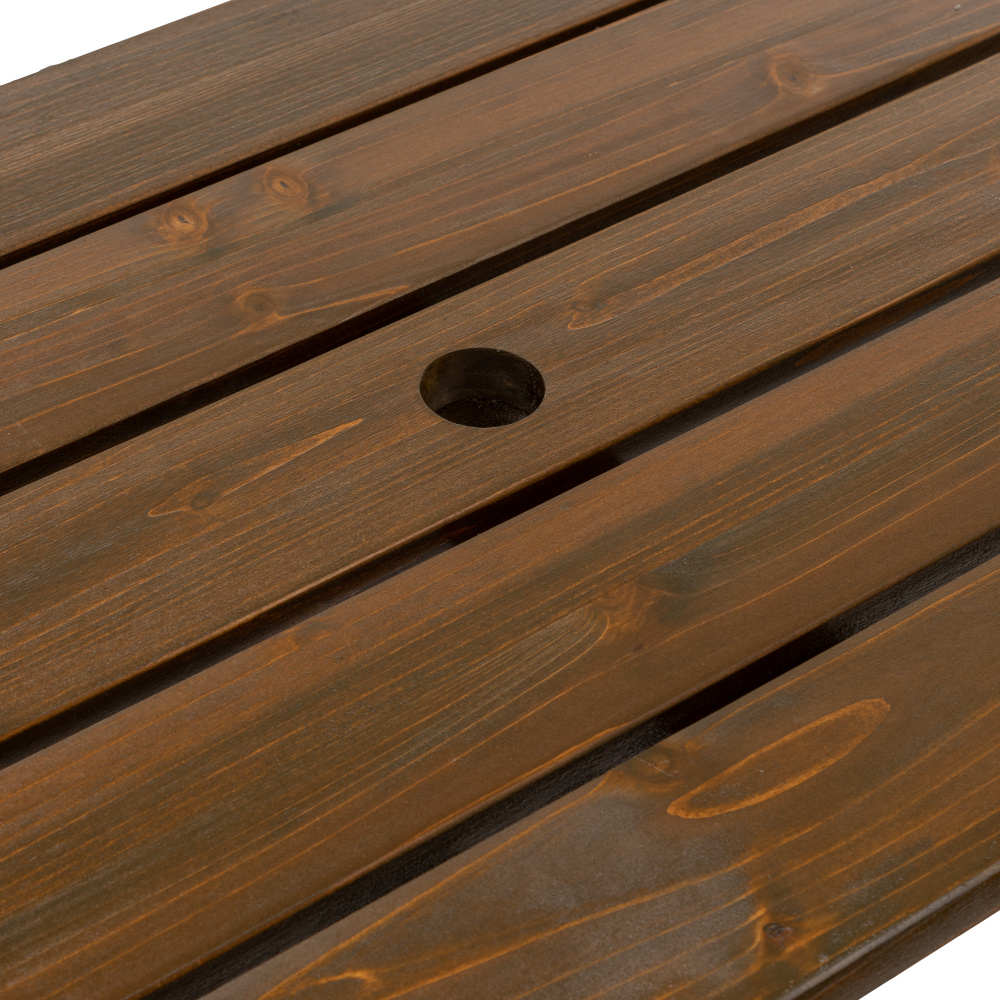 Materiál: borové dřevo Barva: hnědá Rozměry stůl s lavicemi (ŠxHxV): 139,5x133,5x73 cm Rozměry lavička (ŠxHxV): 139x61x83 cm Výška sedu: 47,2 cm Hloubka sedu: 38 cm Šířka sedu: 121,7 cm Výška zad: 37 cm S otvorem na slunečník Průměr otvoru na slunečník: 3,9 cm Odolný vůči povětrnostním podmínkám Doporučujeme výrobek chránit před nepříznivými povětrnostními podmínkami, aby se prodloužila životnost výrobku. Nosnost stolu: 20 kg Nosnost lavice: 90 kg Nosnost lavičky: 200 kg Multifunkční Na zahradu nebo terasu Přírodní design Dodáváno v demontu