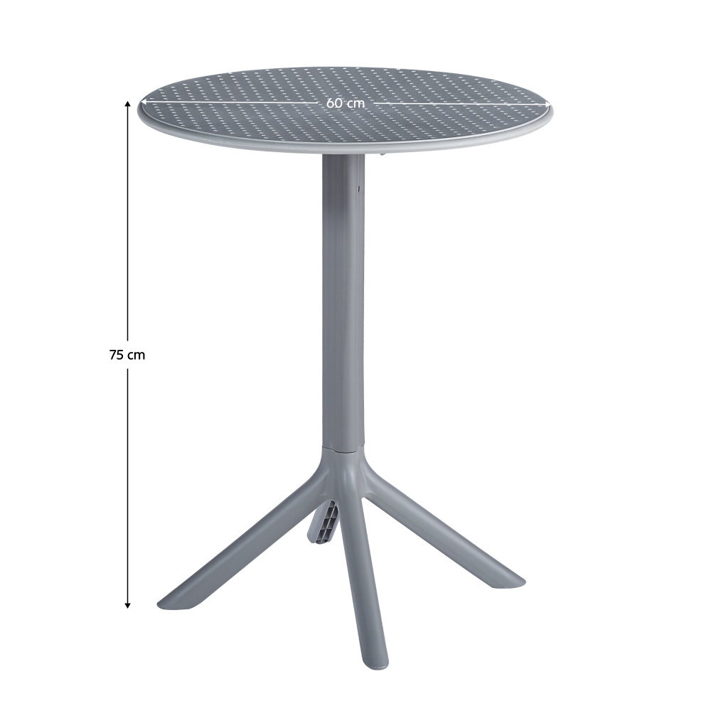 Materiál: plast Barva: šedá Rozměry (ŠxHxV): 60x60x75 cm Nosnost: 50 kg Hmotnost: 3,5 kg Jídelní stůl Zahradní stůl Jednoduchý Praktický Na nožičkách Vhodný do interiéru i exteriéru Dodáváno v demontu
