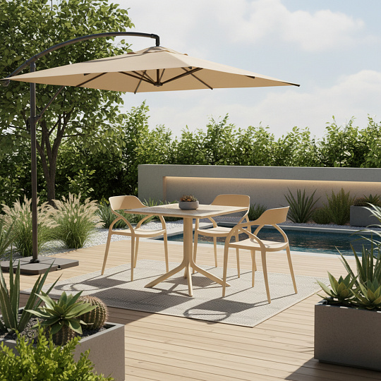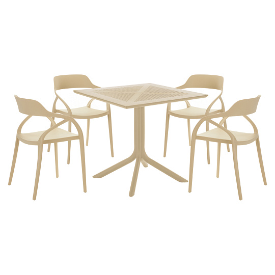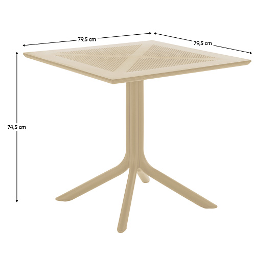 Materiál: plast Barva: šedohnědá Taupe Rozměry (ŠxHxV): 79,5x79,5x74,5 cm Nosnost: 50 kg Hmotnost: 10,5 kg Jednoduchý Praktický Na nožičkách Jídelní/zahradní stůl Vhodný do interiéru i exteriéru Stolování pro 4 lidi Dodáváno v demontu