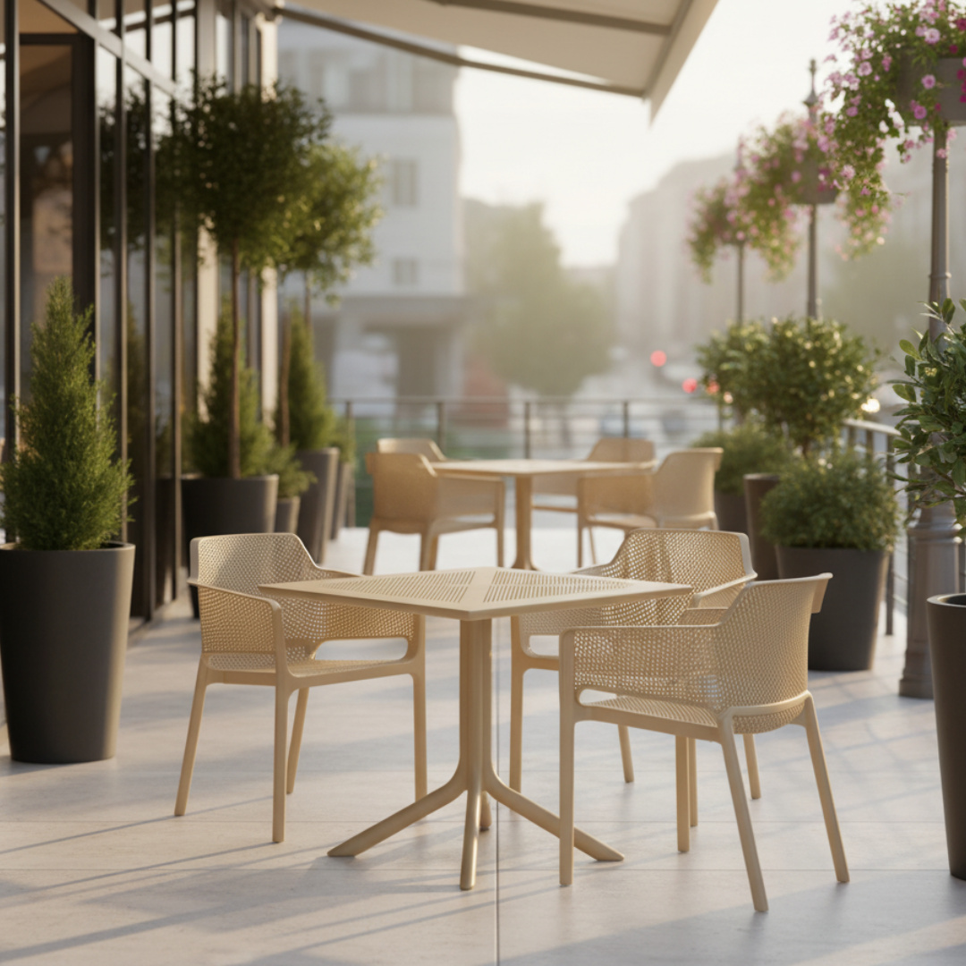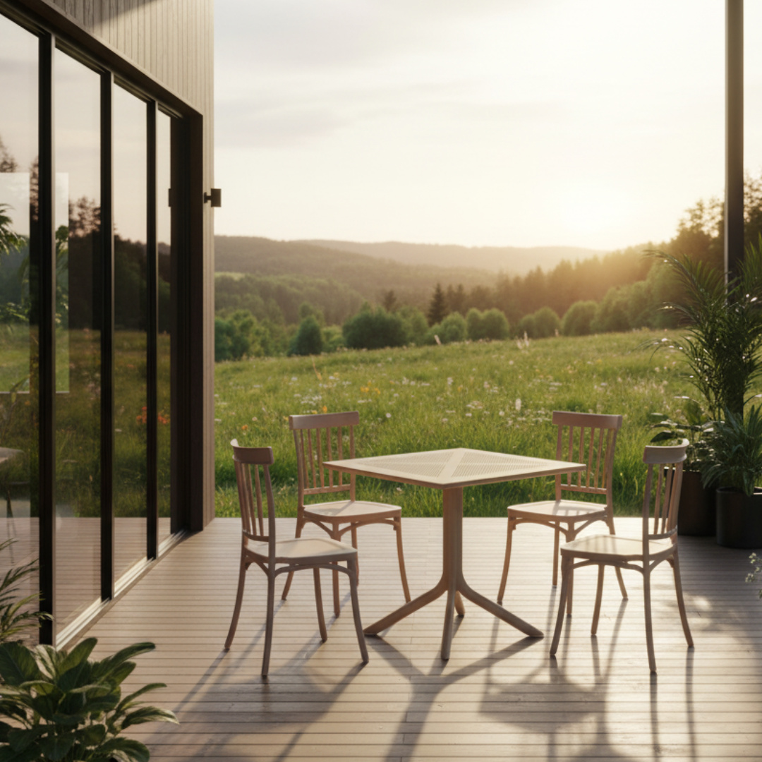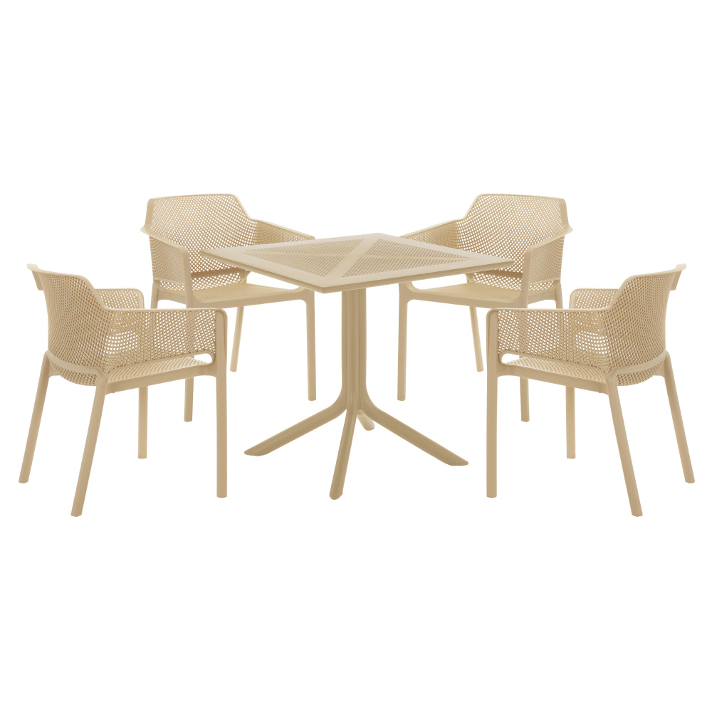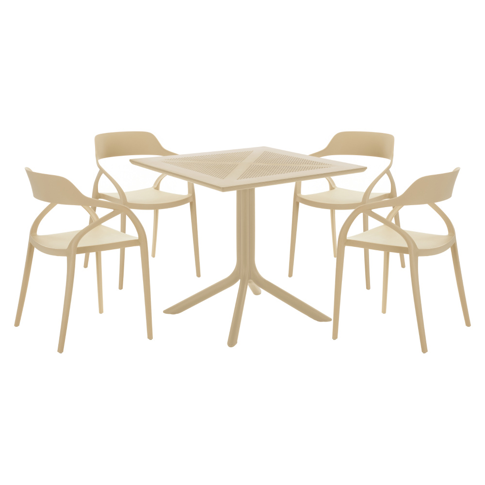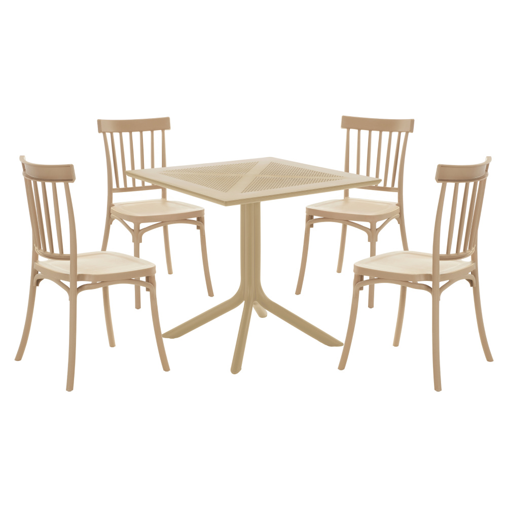 Materiál: plast Barva: šedohnědá Taupe Rozměry (ŠxHxV): 79,5x79,5x74,5 cm Nosnost: 50 kg Hmotnost: 10,5 kg Jednoduchý Praktický Na nožičkách Jídelní/zahradní stůl Vhodný do interiéru i exteriéru Stolování pro 4 lidi Dodáváno v demontu