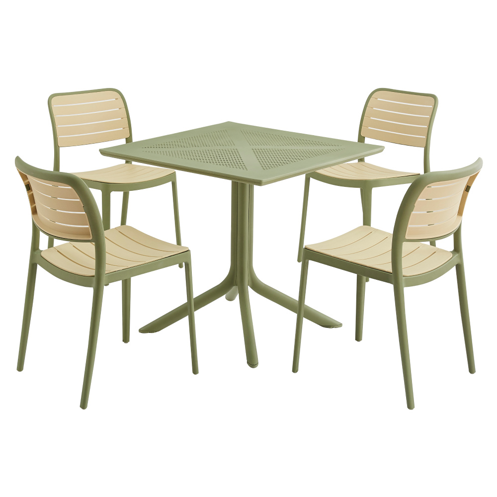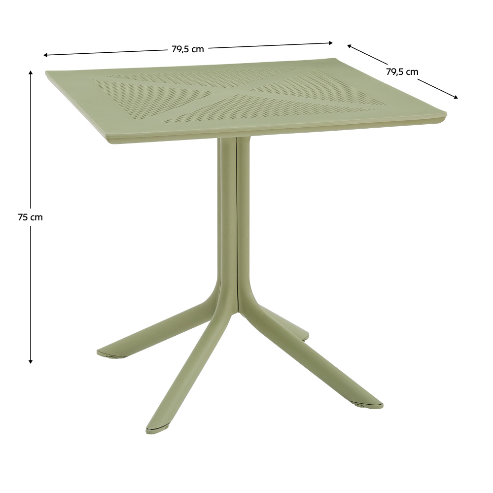Materiál: plast Barva: zelená Rozměry (ŠxHxV): 79,5x79,5x74,5 cm Nosnost: 50 kg Hmotnost: 10,5 kg Jednoduchý Praktický Na nožičkách Jídelní/zahradní stůl Vhodný do interiéru i exteriéru Stolování pro 4 lidi Dodáváno v demontu