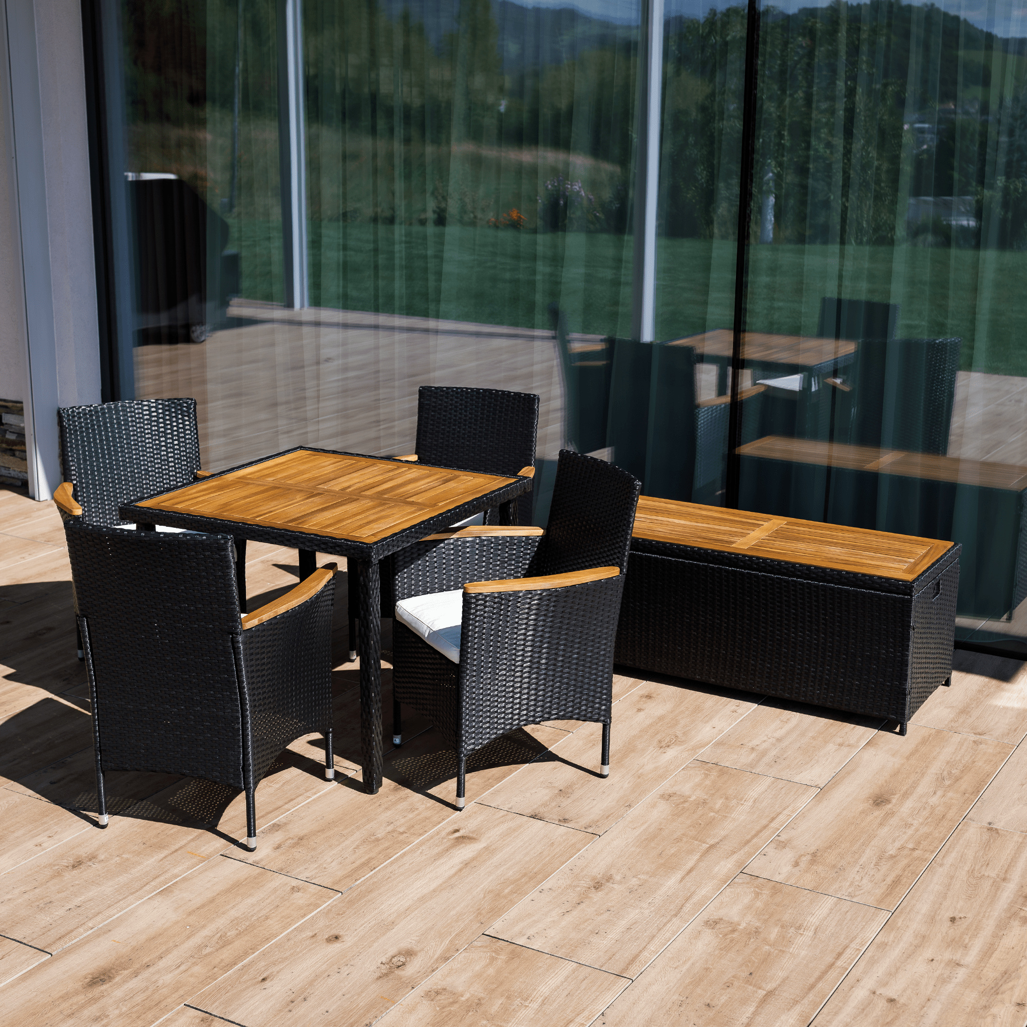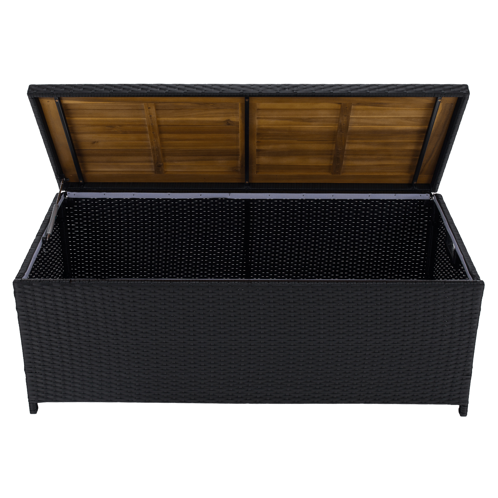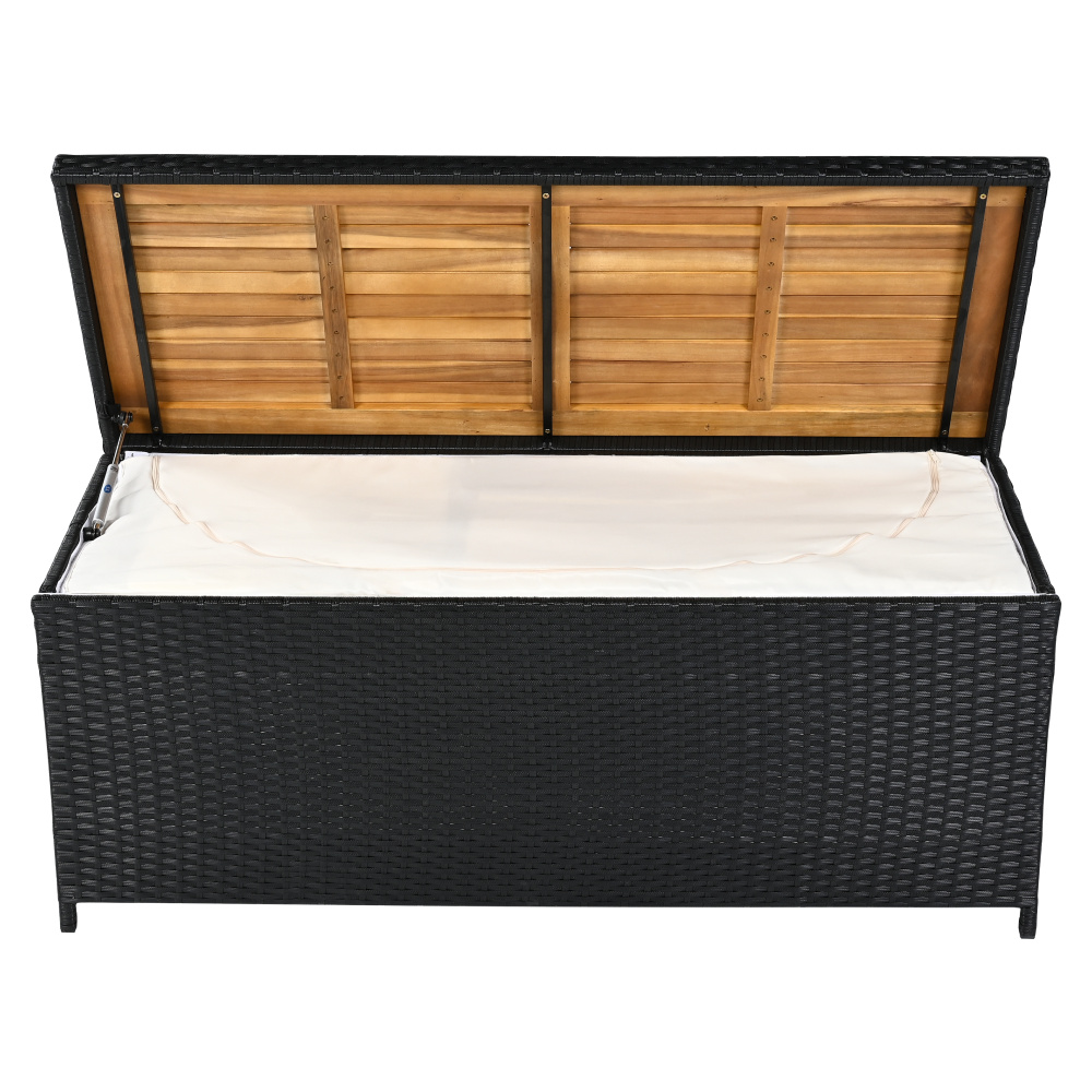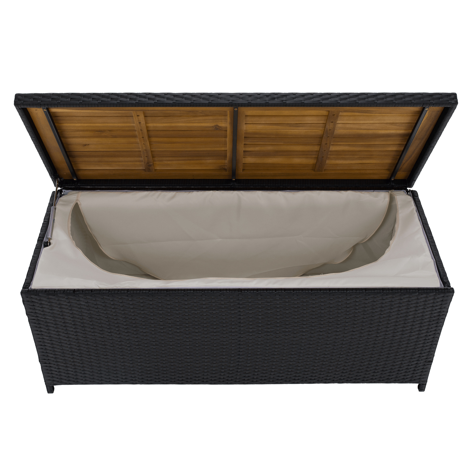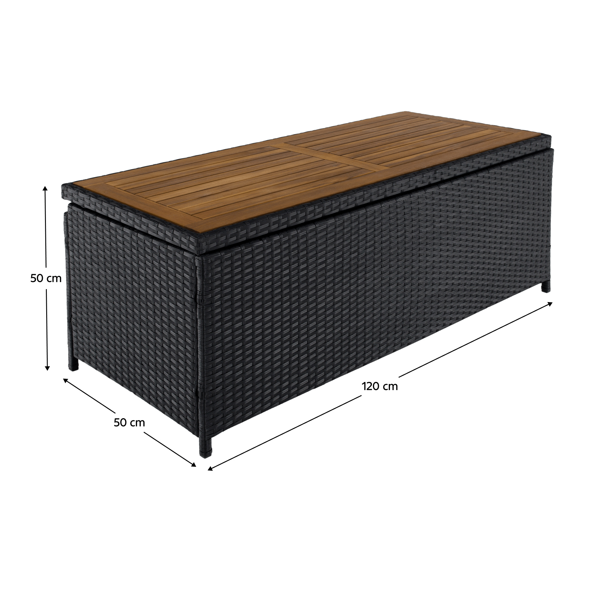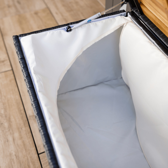 Materiál: technický ratan/masivní akáciové dřevo/ocel/látka Barva: černá/přírodní/krémová Rozměry (ŠxHxV): 120x50x50 cm Výška sedu: 50 cm Hloubka sedu: 50 cm Šířka sedu: 120 cm Nosnost: 100 kg Hmotnost: 13,2 kg Vhodný do exteriéru Odolný vůči povětrnostním podmínkám Doporučujeme výrobek chránit před nepříznivými povětrnostními podmínkami, aby se prodloužila životnost výrobku Otevírání je zajištěno pomocí hydraulického pístu Vhodný na zahradní nářadí, hračky, polštáře, deky Box může posloužit i jako lavice Voděodolný vak se zipem Všestranné využití Moderní design Přírodní design Dodáváno v demontu