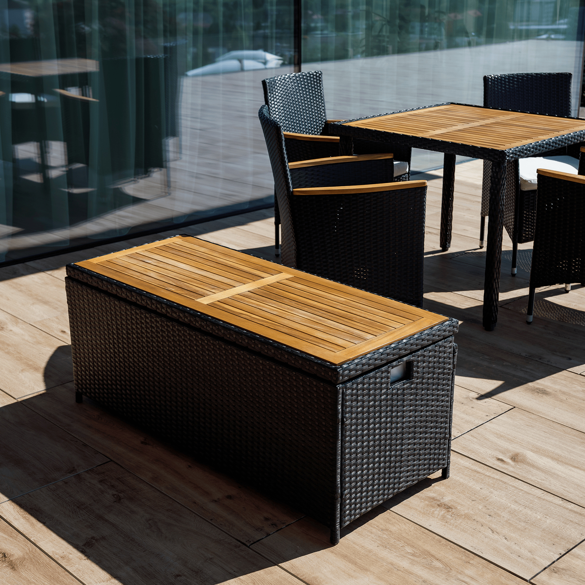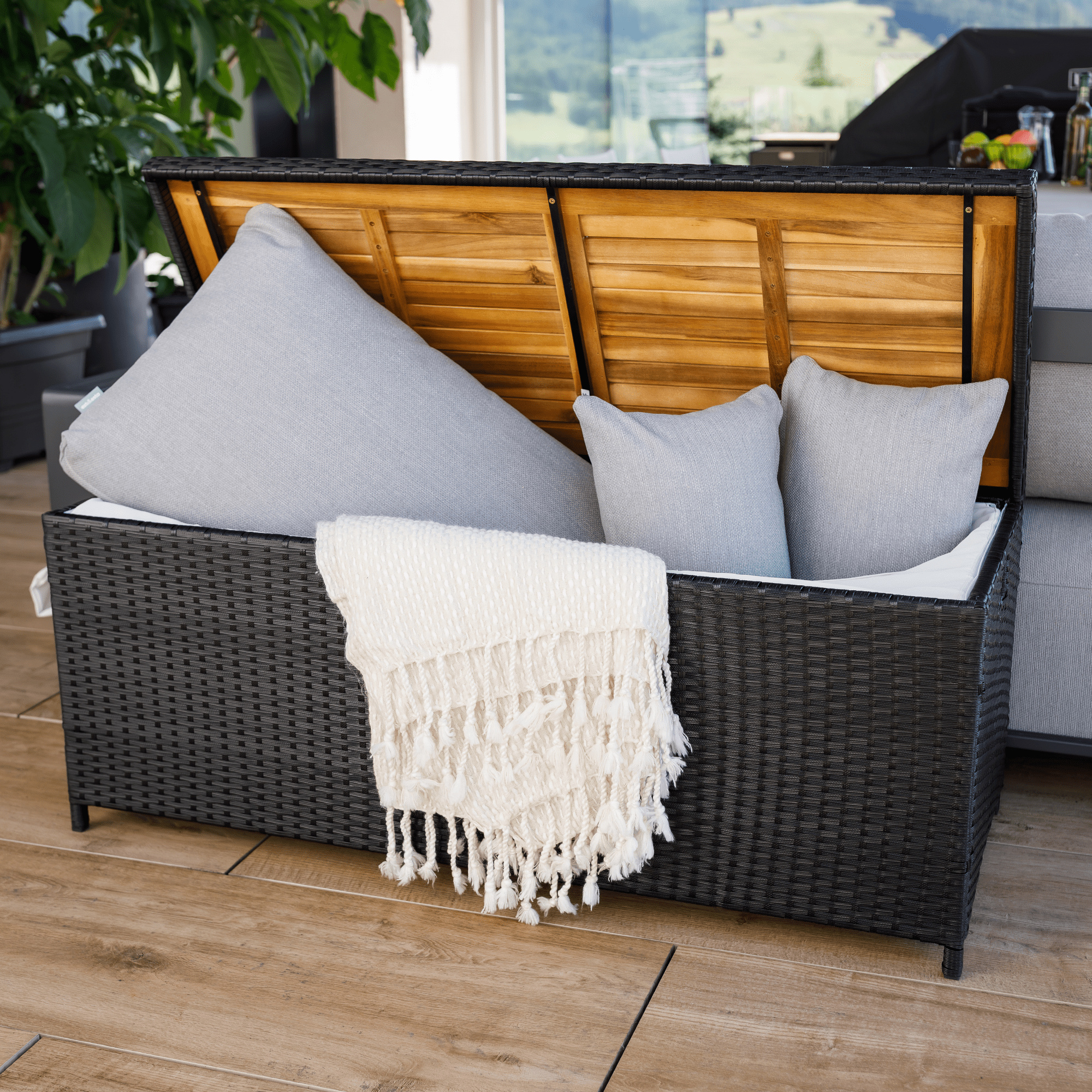 Zahradní úložný box/lavice, černá/přírodní/krémová, BEMUS