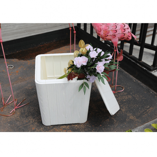 Materiál: plast Barva: bílá Rozměry (ŠxHxV): 39x39x42 cm Objem: 43 litrů úložný box Využití i jako příruční stolek Nevhodný na sezení Dodávané v demontu