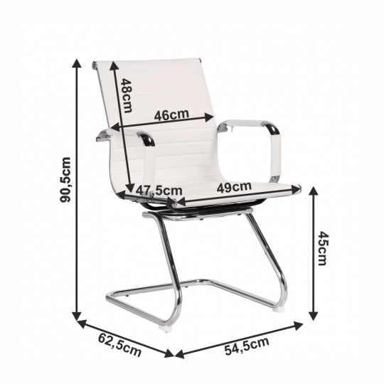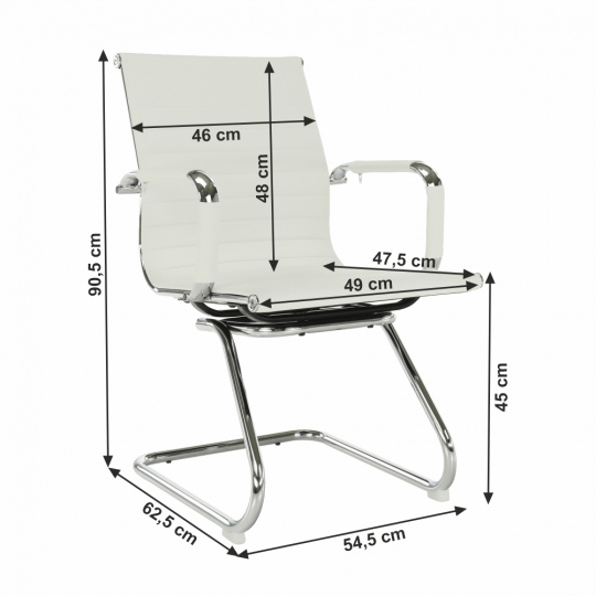 Materiál: ekokůže / chrom Oděruodolnost ekokůže podle testu Martindale: 100 000 oděrek Barva: bílá Rozměry (ŠxHxV): 54,5x62,5x90,5 cm Výška sedu: 45 cm Hloubka sedu: 47,5 cm Šířka sedu: 49 cm Opěrka zad (ŠxV): 46x48 cm Nosnost: 110 kg Univerzální kolečka vhodná pro měkké i tvrdé podlahy Dodávané v demontu