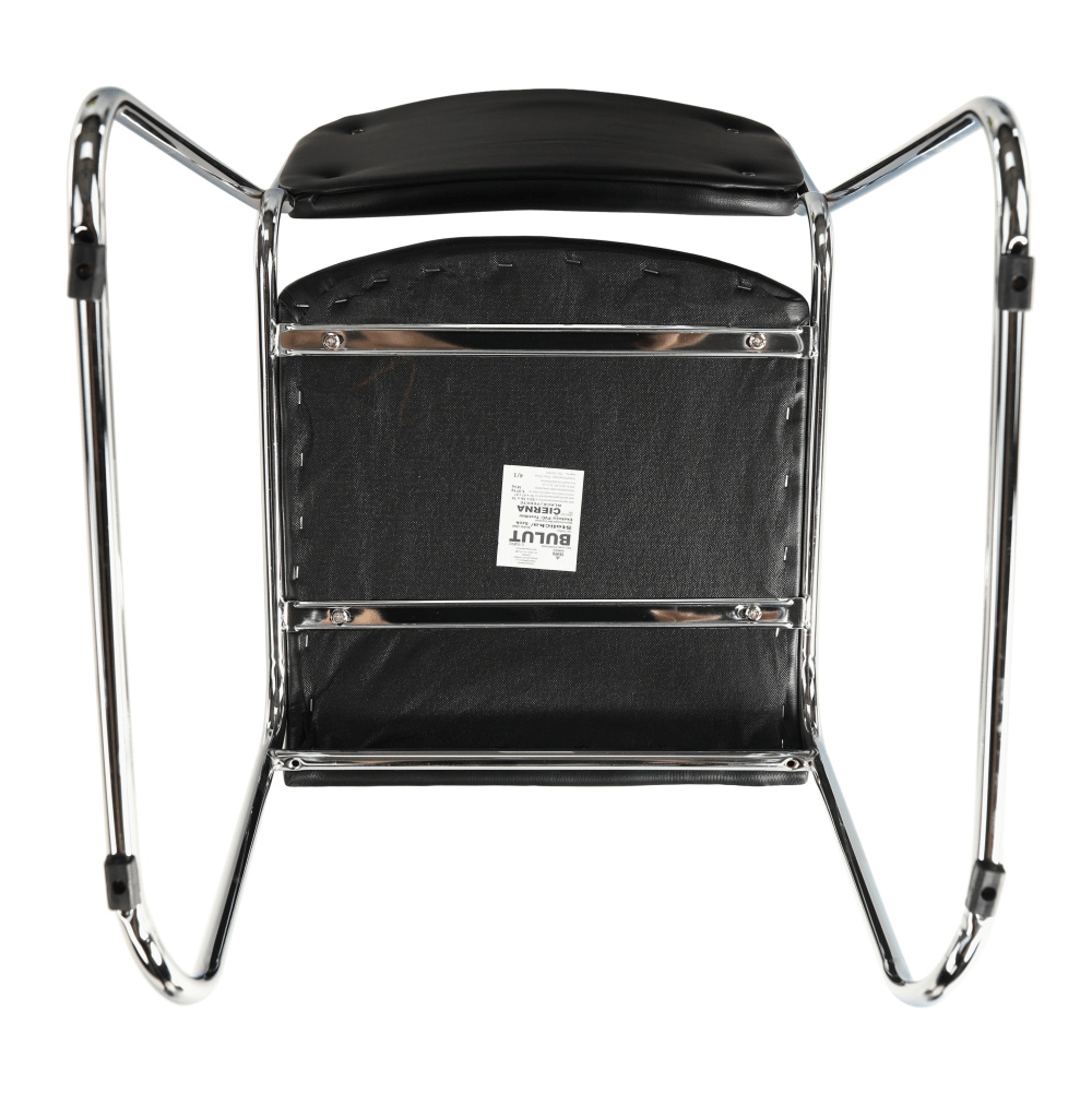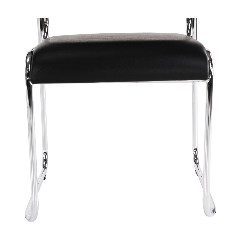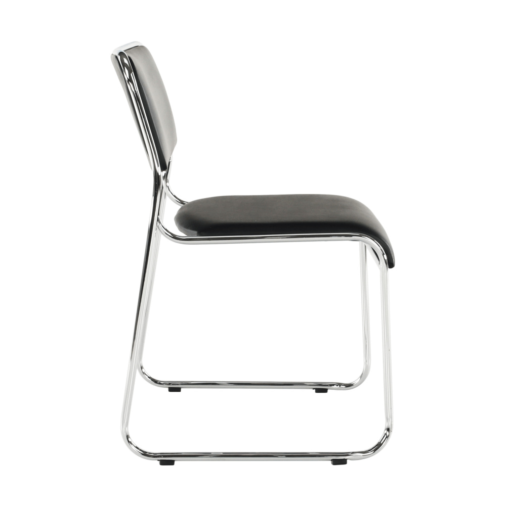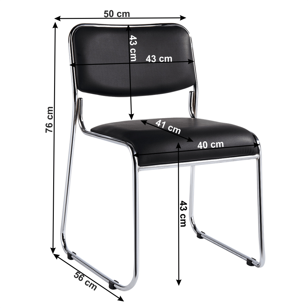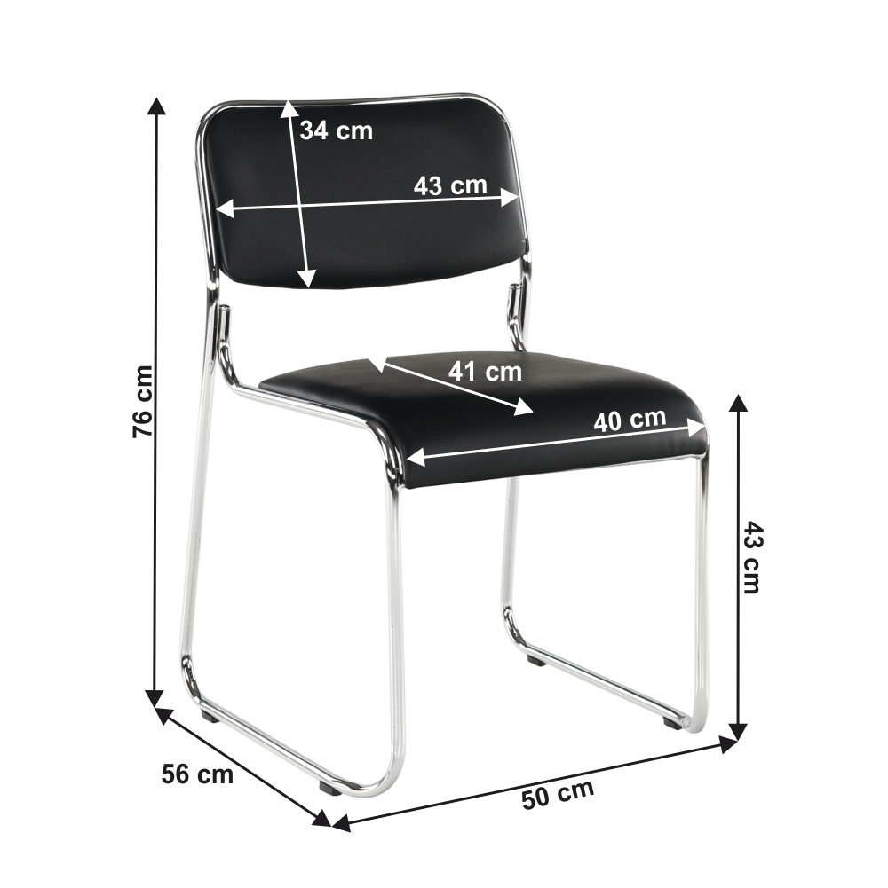 Barva: černá / chrom Materiál: ekokůže / kov Oděruodolnost textilie podle testu Martindale: 90 000 oděrek Rozměry (ŠxHxV): 50x56x76 cm Výška sedu: 43 cm Hloubka sedu: 41 cm Šířka sedu: 40 cm Výška zádové opěrky: 34 cm Šířka zádové opěrky: 43 cm Nosnost: 110 kg stohovatelná Dodávané v monte.