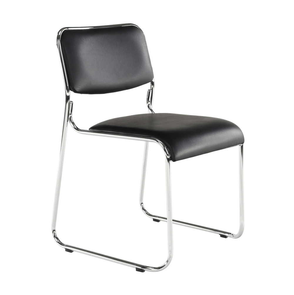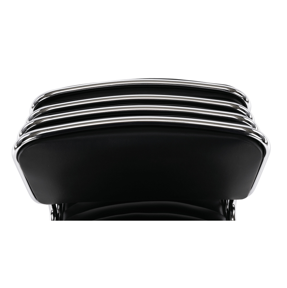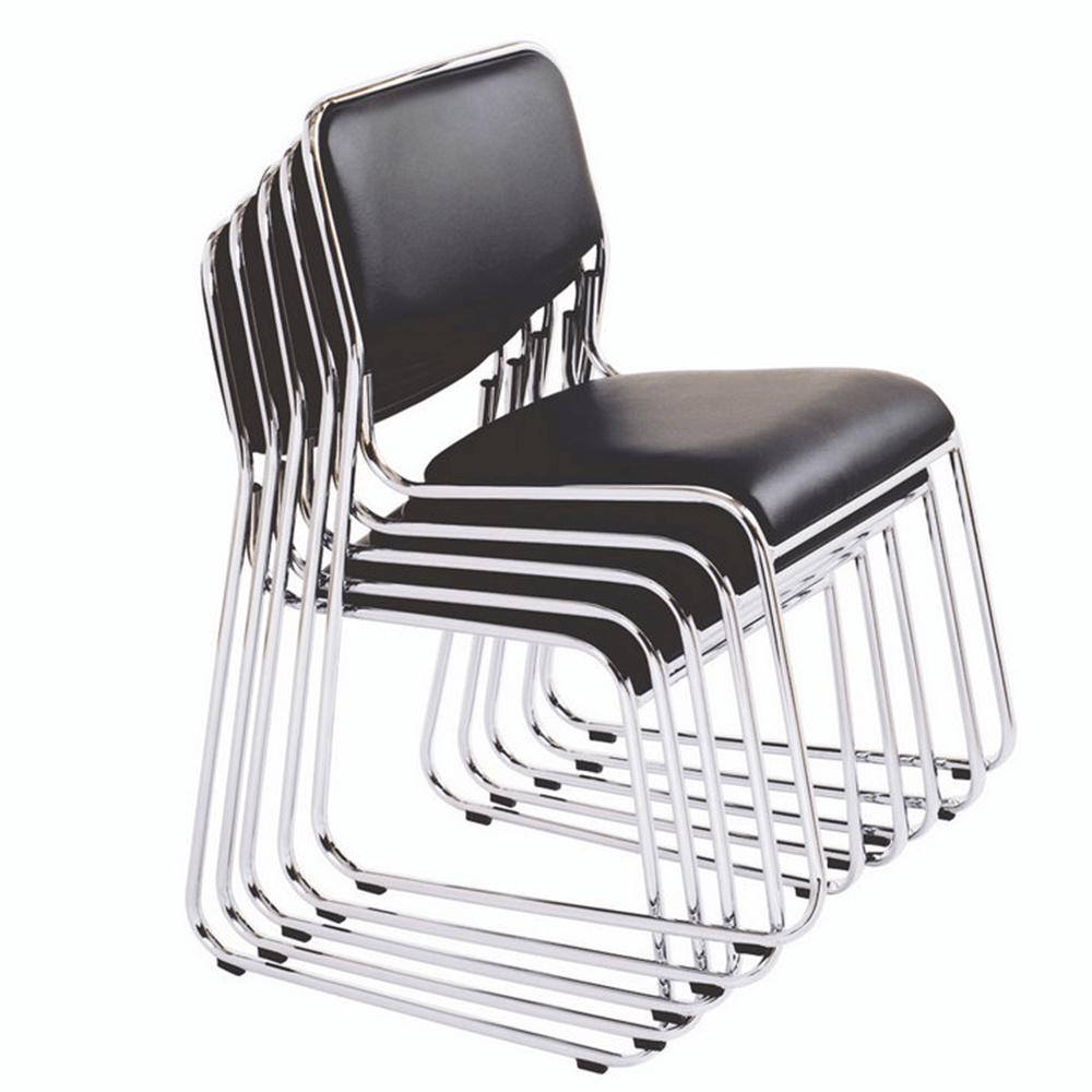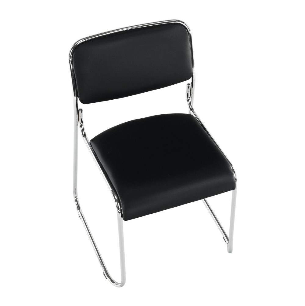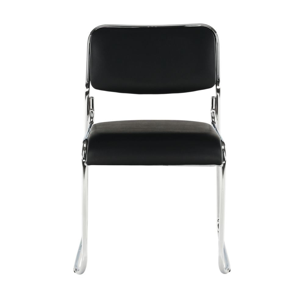 Barva: černá / chrom Materiál: ekokůže / kov Oděruodolnost textilie podle testu Martindale: 90 000 oděrek Rozměry (ŠxHxV): 50x56x76 cm Výška sedu: 43 cm Hloubka sedu: 41 cm Šířka sedu: 40 cm Výška zádové opěrky: 34 cm Šířka zádové opěrky: 43 cm Nosnost: 110 kg stohovatelná Dodávané v monte.