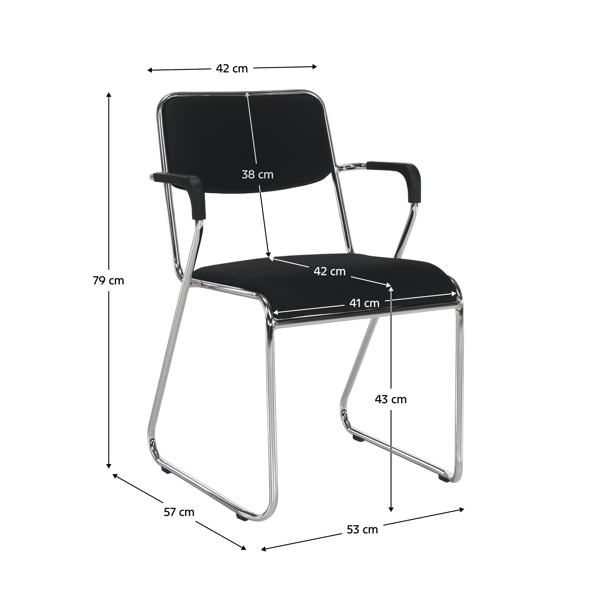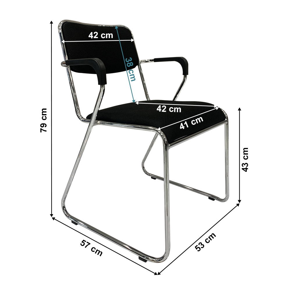 Barva: černá / chrom Materiál: síťovina / plast / kov Oděruodolnost textilie podle testu Martindale: 90 000 oděrek Rozměry (ŠxHxV): 53x57x79 cm Výška sedu: 43 cm Hloubka sedu: 42 cm Šířka sedu: 41 cm Šířka zádové opěrky: 41 cm Výška zádové opěrky: 38 cm Nosnost: 110 kg stohovatelná Dodávané v monte.