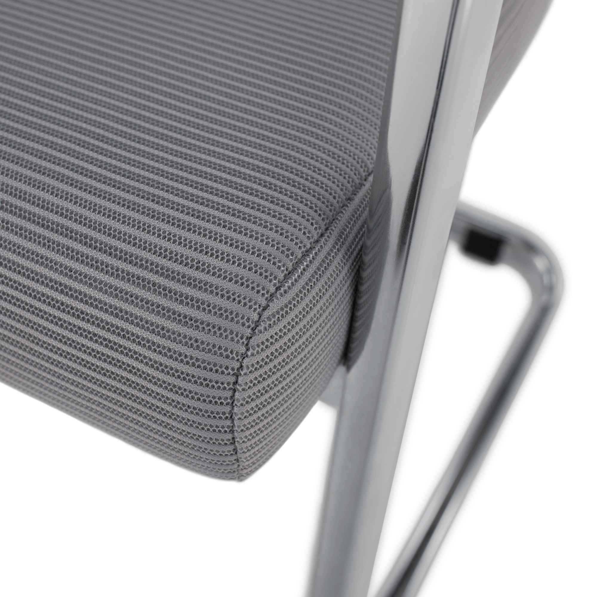 Materiál čalounění: síťovina/plast/kov Oděruodolnost textilie podle testu Martindale: 90 000 oděrů Barva: šedá/černá Materiál konstrukce: kov Barva: chromová povrchová úprava Rozměry (ŠxHxV): 57x62x100 cm Výška sedu: 45 cm Hloubka sedu: 50 cm Šířka sedu : 49 cm Výška zádové opěrky: 56 cm Šířka zádové opěrky: 44,5 cm Výška od země po opěrku na ruce: 63,5 cm Nosnost: 110 kg Chromová podstava Plastové opěrky na ruce Dodáváno v demontu