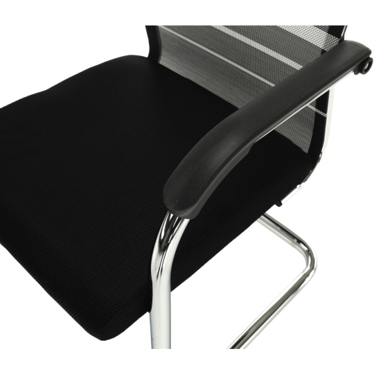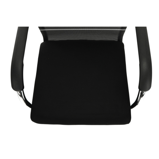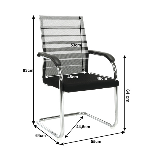 Materiál: síťovina / kov Oděruodolnost textilie podle testu Martindale: 90 000 oděrek Barva: černá / šedá / stříbrná Rozměry (ŠxHxV): 55x64x93 cm Výška sedu: 45 cm Hloubka sedu: 48 cm Šířka sedu: 48 cm Šířka zádové opěrky: 44,5 cm Výška zádové opěrky: 53 cm Výška od země po vrch područky: 64cm Nosnost: 100 kg Plastové područky pevná konstrukce Do zasadačiek a jednacích místností Dodávané v demontu