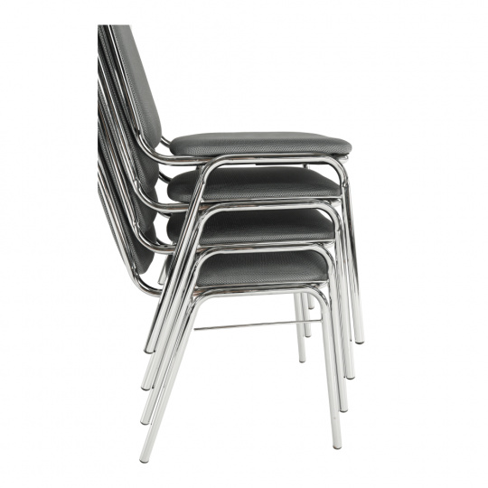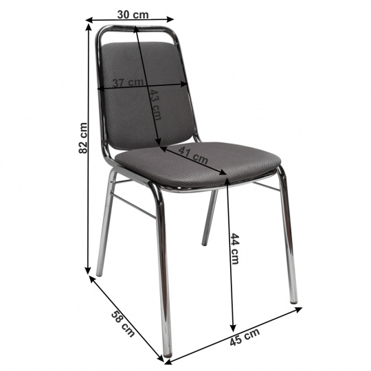 Barva: šedá / chrom Materiál: síťovina / kov Oděruodolnost textilie podle testu Martindale: 90 000 oděrek Rozměry (ŠxHxV): 45x58x82 cm Výška sedu: 44 cm Hloubka sedu: 41 cm Šířka sedu: 40 cm Šířka zádové opěrky: 37 cm Výška zádové opěrky: 43 cm Nosnost: 120 kg stohovatelná Dodávané v monte.