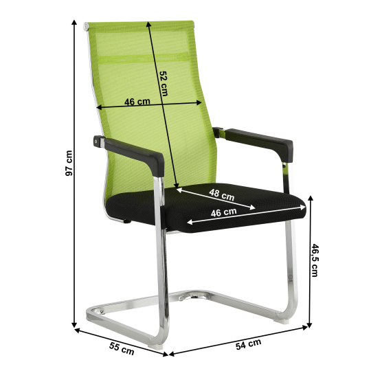 Materiál čalounění: síťovina Oděruodolnost textilie podle testu Martindale: 90 000 oděrů Barva: zelená/černá Materiál konstrukce: kov Barva: chromová povrchová úprava Rozměry (ŠxHxV): 56,5x64x101 cm Výška sedu: 45 cm Hloubka sedu: 49 cm Šířka sedu: 49 cm Výška zádové opěrky: 58 cm Šířka zádové opěrky: 44,5 cm Nosnost: 120 kg Chromová podstava Plastové opěrky na ruce Dodáváno v demontu