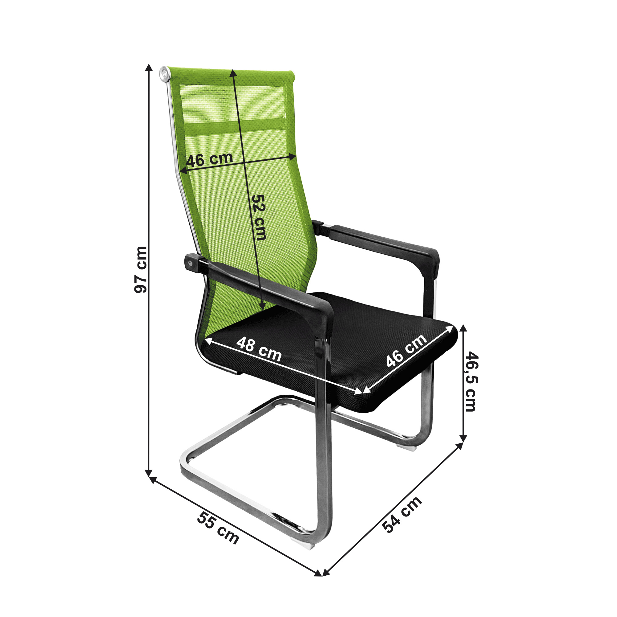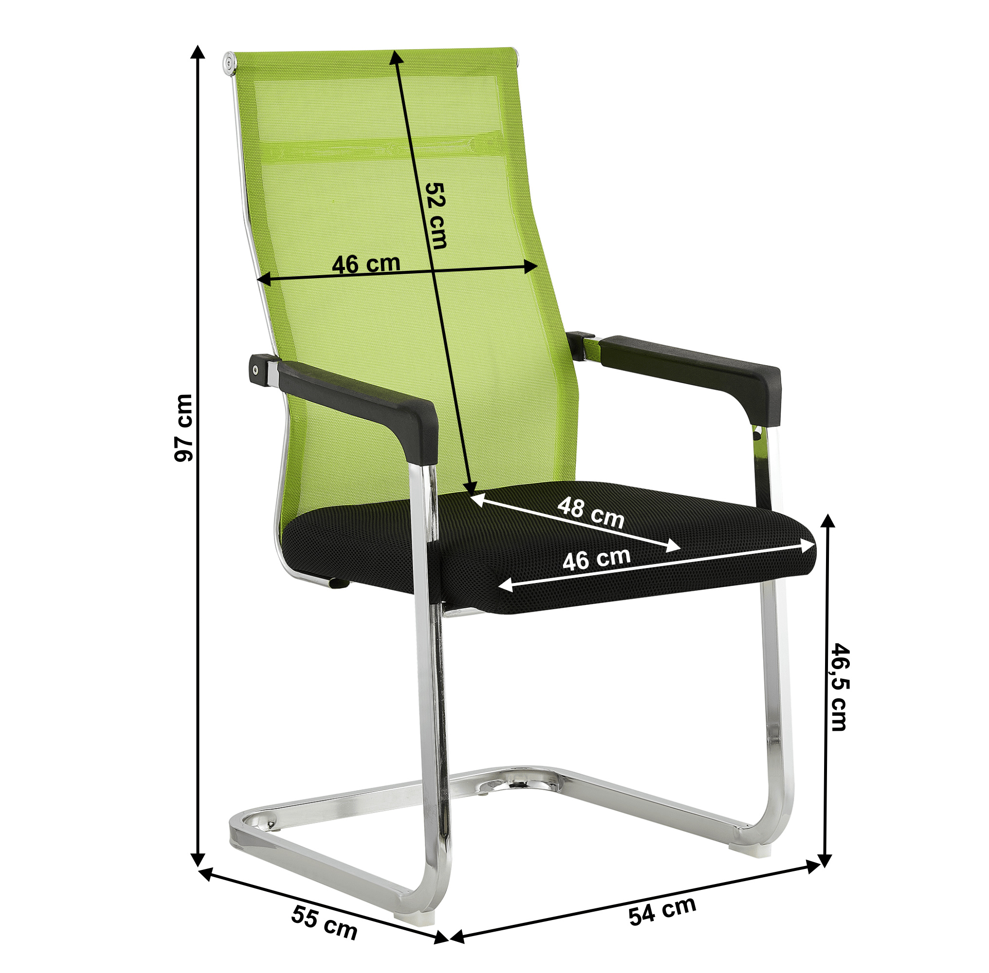 Materiál čalounění: síťovina Oděruodolnost textilie podle testu Martindale: 90 000 oděrů Barva: zelená/černá Materiál konstrukce: kov Barva: chromová povrchová úprava Rozměry (ŠxHxV): 56,5x64x101 cm Výška sedu: 45 cm Hloubka sedu: 49 cm Šířka sedu: 49 cm Výška zádové opěrky: 58 cm Šířka zádové opěrky: 44,5 cm Nosnost: 120 kg Chromová podstava Plastové opěrky na ruce Dodáváno v demontu