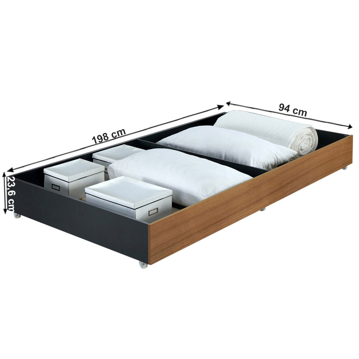 Materiál: masivní dřevo / MDF Barva: dub Rozměry (ŠxHxV): 94x198x23,6 cm úložný prostor přistýlka Dodávané bez doplňků a bez matrace podle ilustračních fotografií Dodávané v demontu
