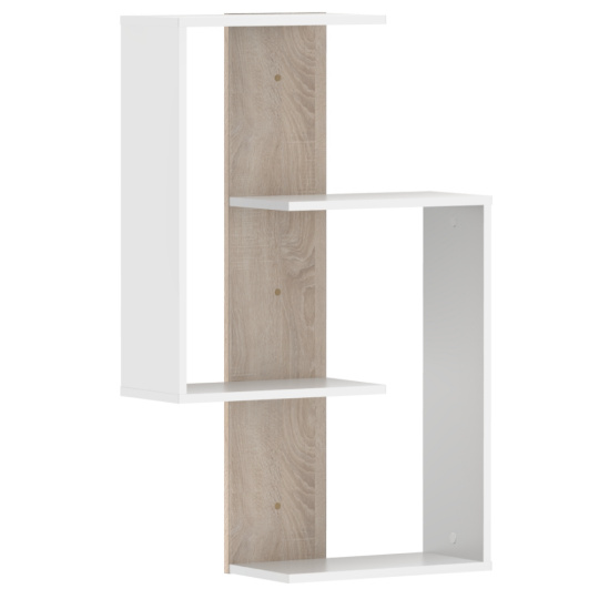 Materiál: laminovaná DTD Barva: bílá/dub sonoma Rozměry (ŠxHxV): 65x22x100 cm Tloušťka materiálu: 1,6 cm Hmotnost: 10 kg Nosnost police: 5 kg Nástěnná Závěsná Otevřený úložný prostor Moderní Doporučujeme připevnit ke stěně Kvalitní slovenský výrobek Dodáváno v demontu