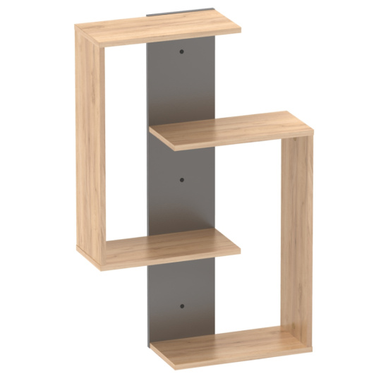 Materiál: laminovaná DTD Barva: dub artisan/grafit Rozměry (ŠxHxV): 65x22x100 cm Tloušťka materiálu: 1,6 cm Hmotnost: 10 kg Nosnost police: 5 kg Nástěnná Závěsná Otevřený úložný prostor Moderní Doporučujeme připevnit ke stěně Kvalitní slovenský výrobek Dodáváno v demontu
