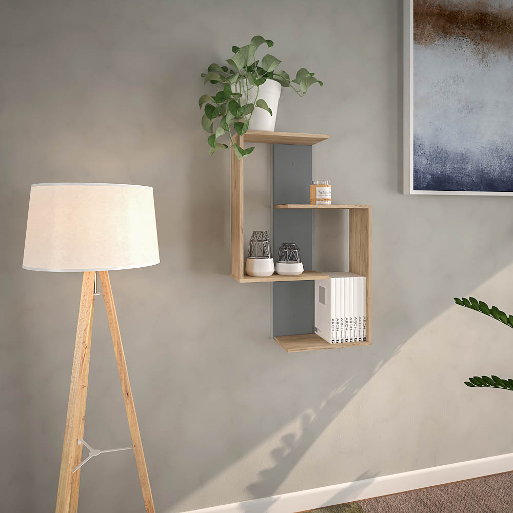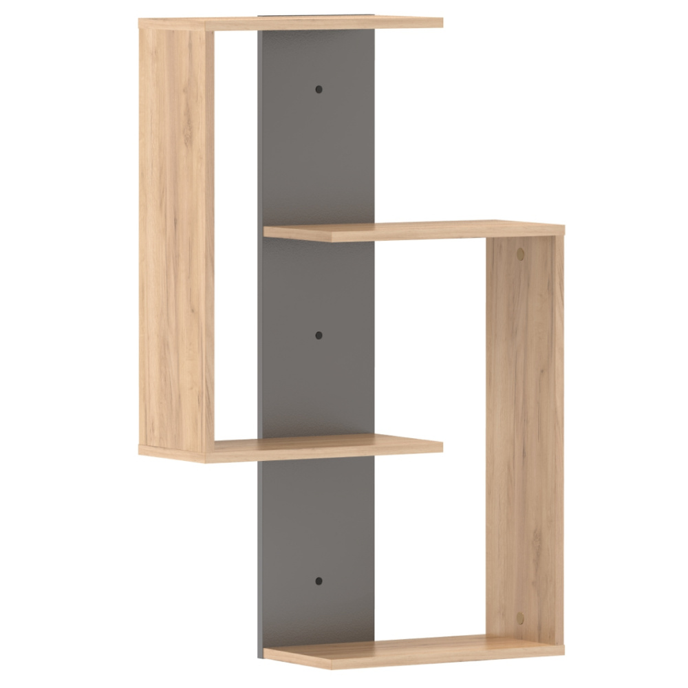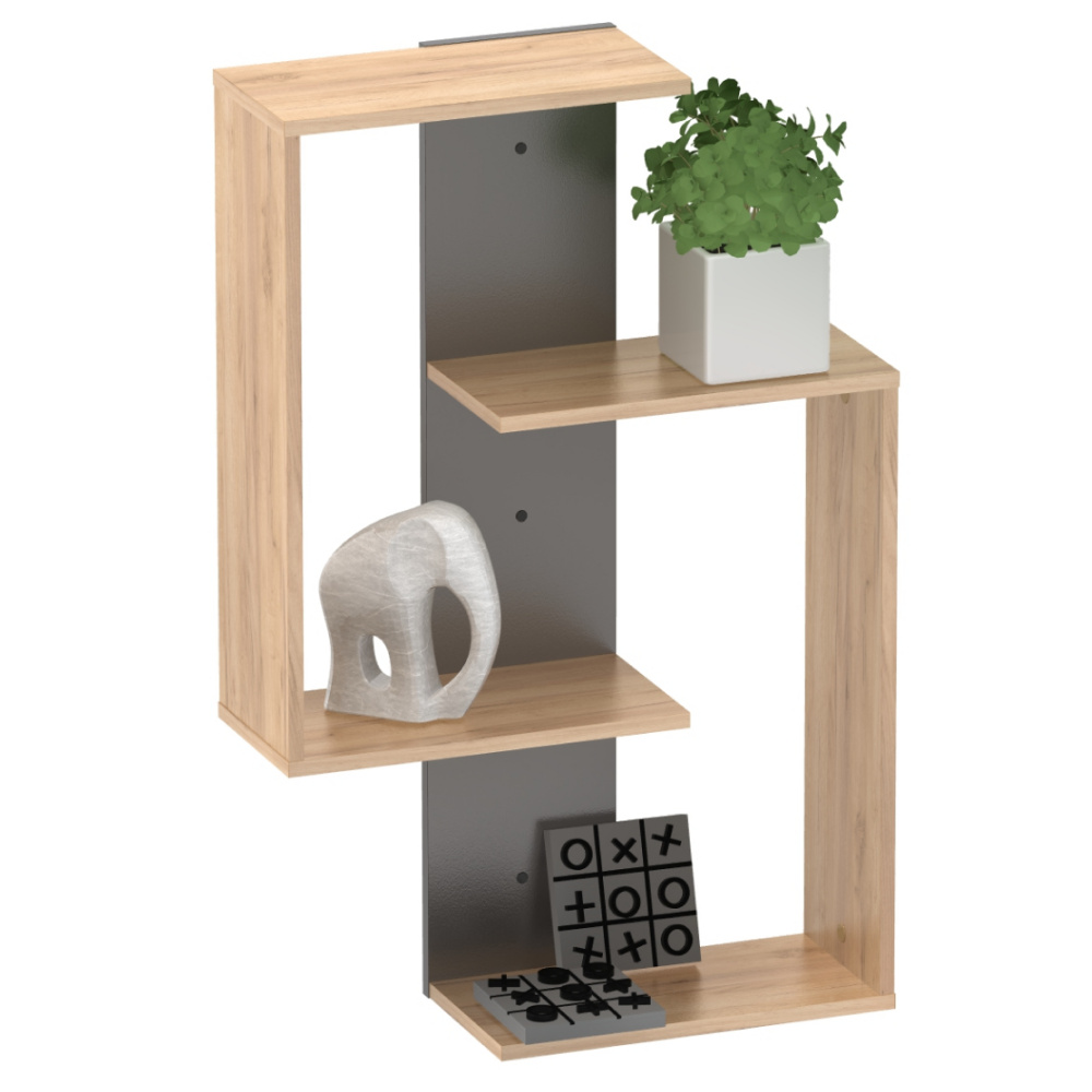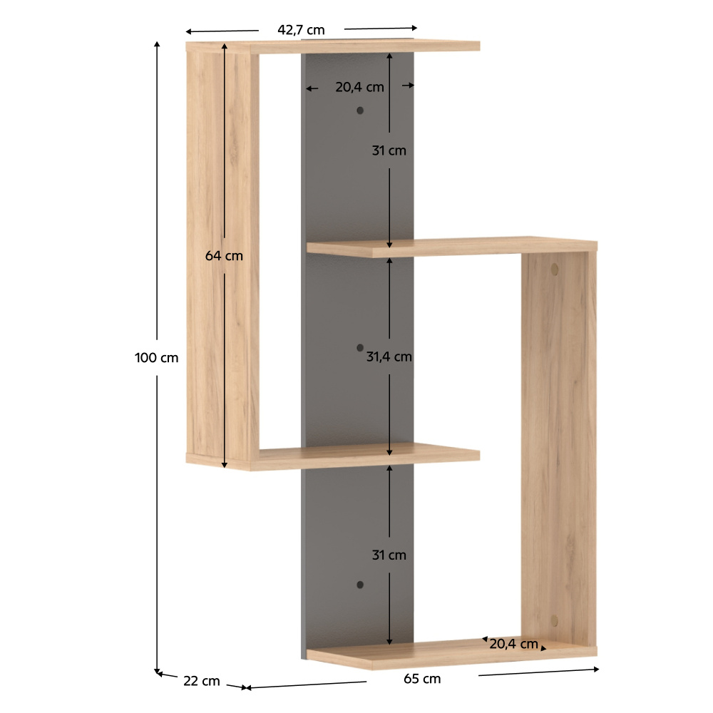 Materiál: laminovaná DTD Barva: dub artisan/grafit Rozměry (ŠxHxV): 65x22x100 cm Tloušťka materiálu: 1,6 cm Hmotnost: 10 kg Nosnost police: 5 kg Nástěnná Závěsná Otevřený úložný prostor Moderní Doporučujeme připevnit ke stěně Kvalitní slovenský výrobek Dodáváno v demontu