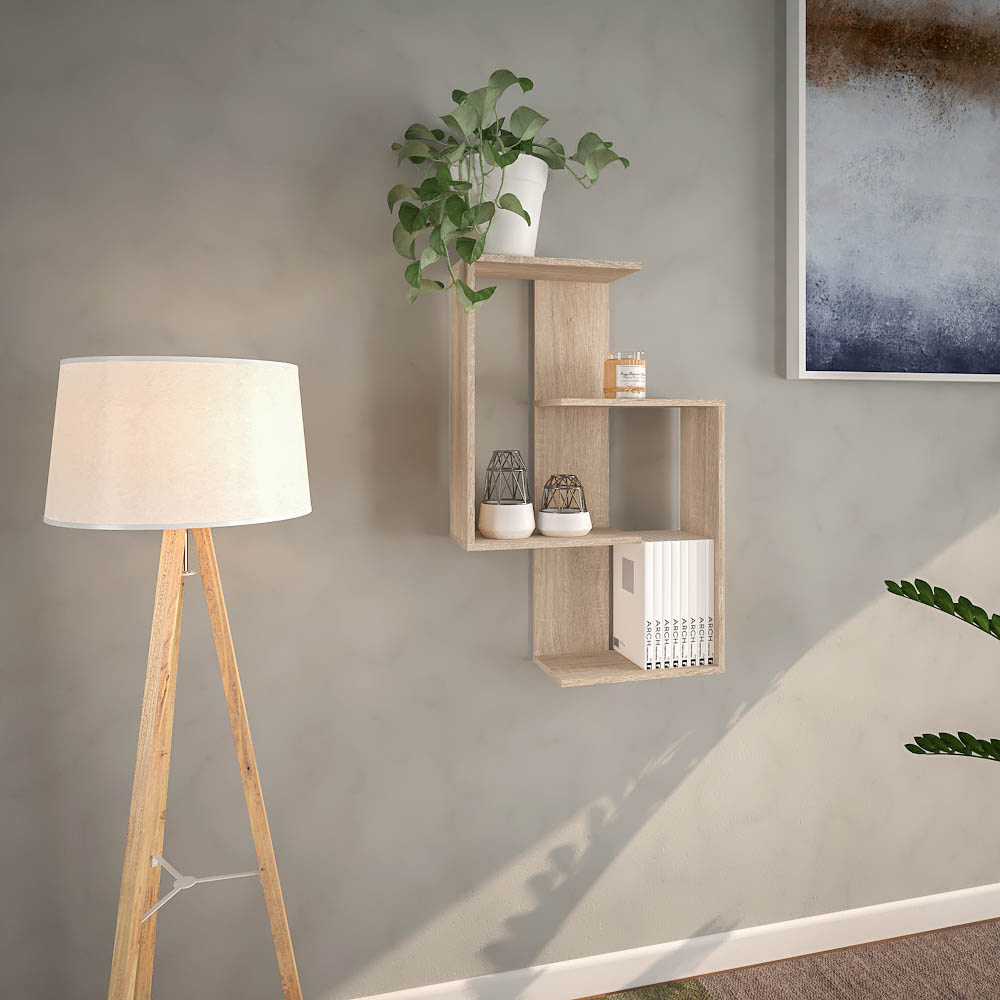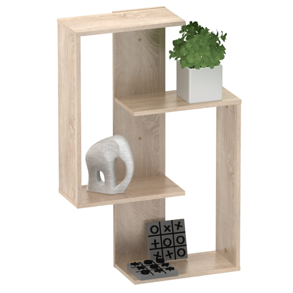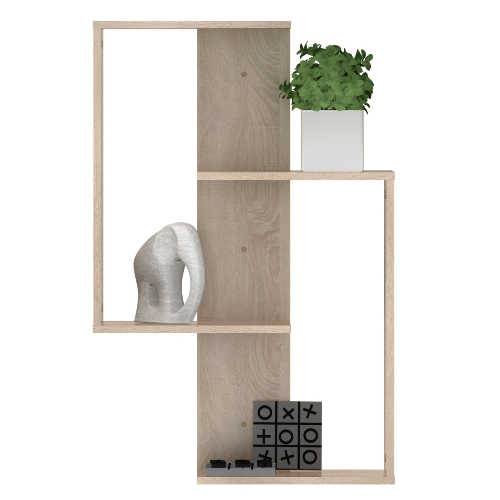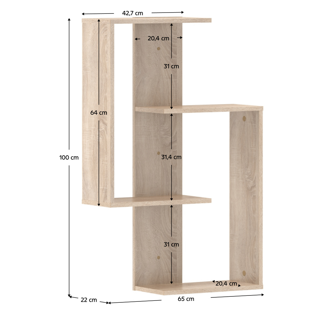 Materiál: laminovaná DTD Barva: dub sonoma Rozměry (ŠxHxV): 65x22x100 cm Tloušťka materiálu: 1,6 cm Hmotnost: 10 kg Nosnost police: 5 kg Nástěnná Závěsná Otevřený úložný prostor Moderní Doporučujeme připevnit ke stěně Kvalitní slovenský výrobek Dodáváno v demontu
