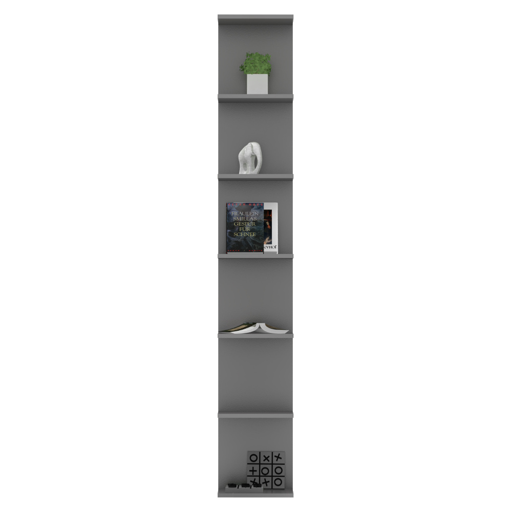 Materiál: laminovaná DTD Barva: grafit Rozměry (ŠxHxV): 30x28x190 cm Tloušťka materiálu: 1,6 cm Hmotnost: 13,5 kg Nosnost police: 3 kg Nástěnná Závěsná Otevřený úložný prostor Police Rozměry police (ŠxH): 29,8x26,4 cm Výška mezi policemi: 29,8 cm Moderní Doporučujeme připevnit ke stěně Kvalitní slovenský výrobek Dodáváno v demontu