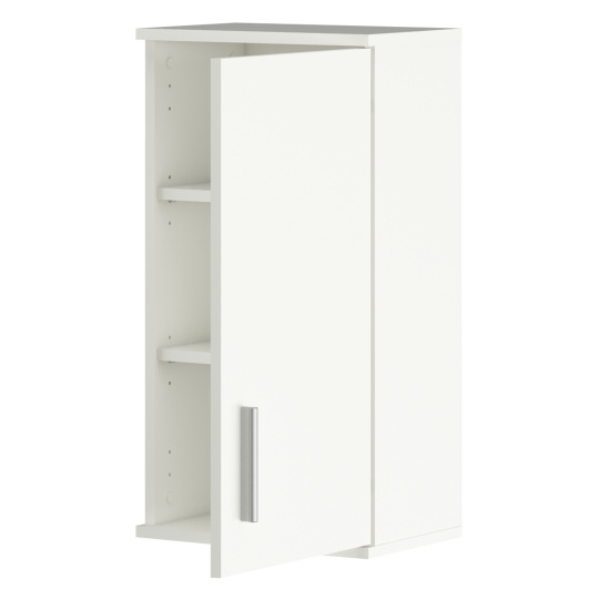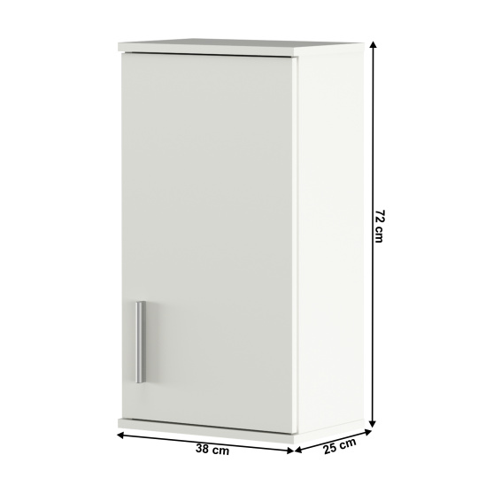 Materiál: DTD laminovaná Barva: matná bílá Rozměry (ŠxHxV): 38x25x72 cm Tloušťka materiálu: 1,6 cm Plastové úchytky Barva úchytek: šedá 1-dveřová 2 police Univerzální Moderní design Kvalitní slovenský výrobek Dodáváno v demontu