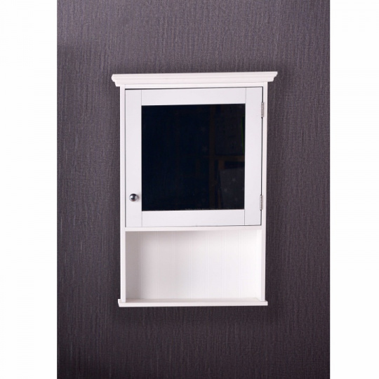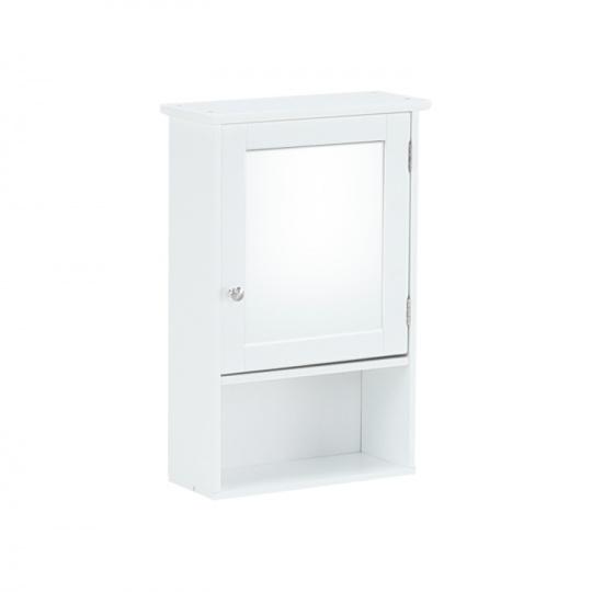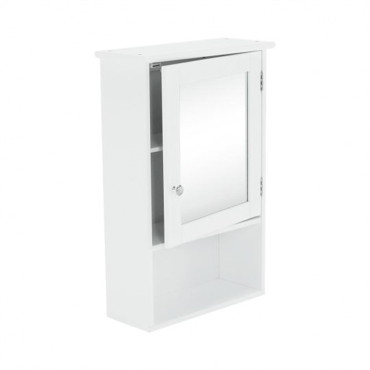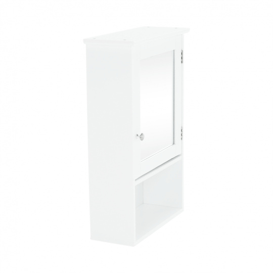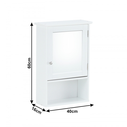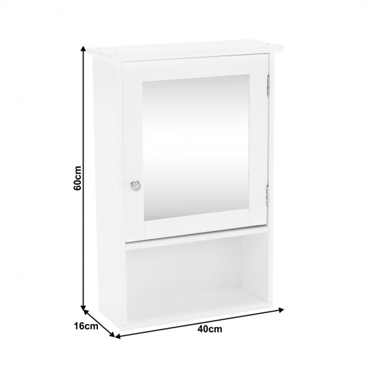 ATENE TYP 2 závěsná skříňka se zrcadlem Jednodveřová, otevřený prostor Barevné provedení: bílá, Materiál: lakovaná MDF Rozměry (ŠxHxV): 40x16x60 cm. Tloušťka materiálu: 12 mm Dodávané v demontu.