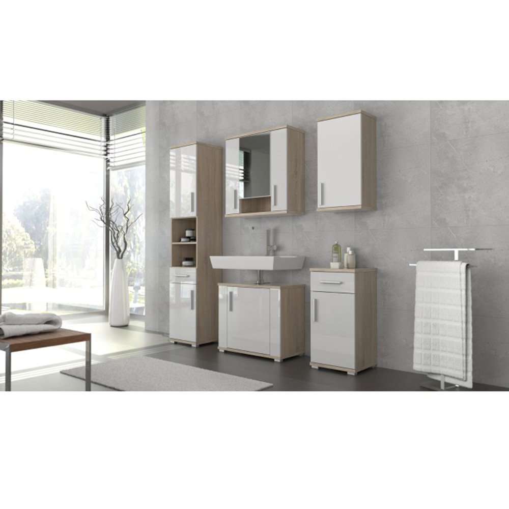 Závěsná skříňka se zrcadlem, dub sonoma/matná bílá, LESSY NEW 01