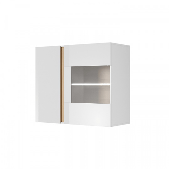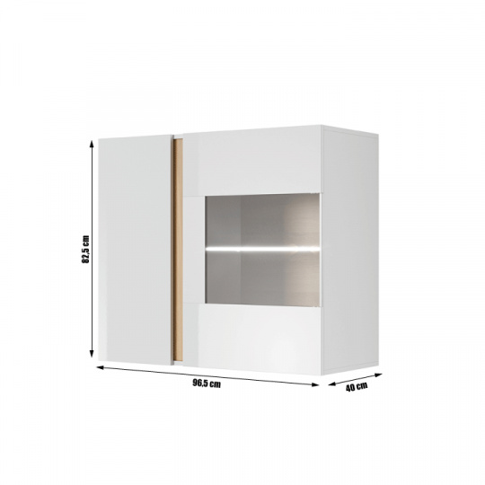 Závěsná vitrína 96, bílá / dub grandson / bílý lesk, CITY