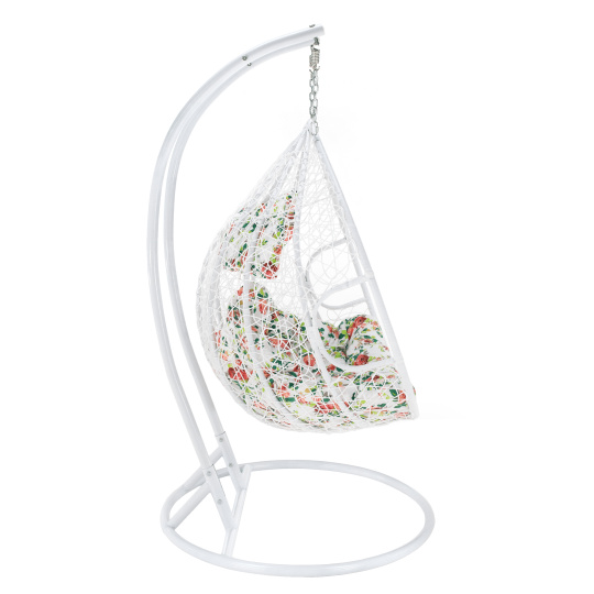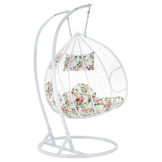 Závěsné dvojkřeslo, bílá/vzor květiny, DALVEA 2 NEW