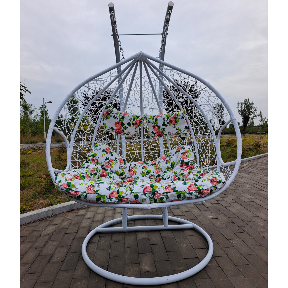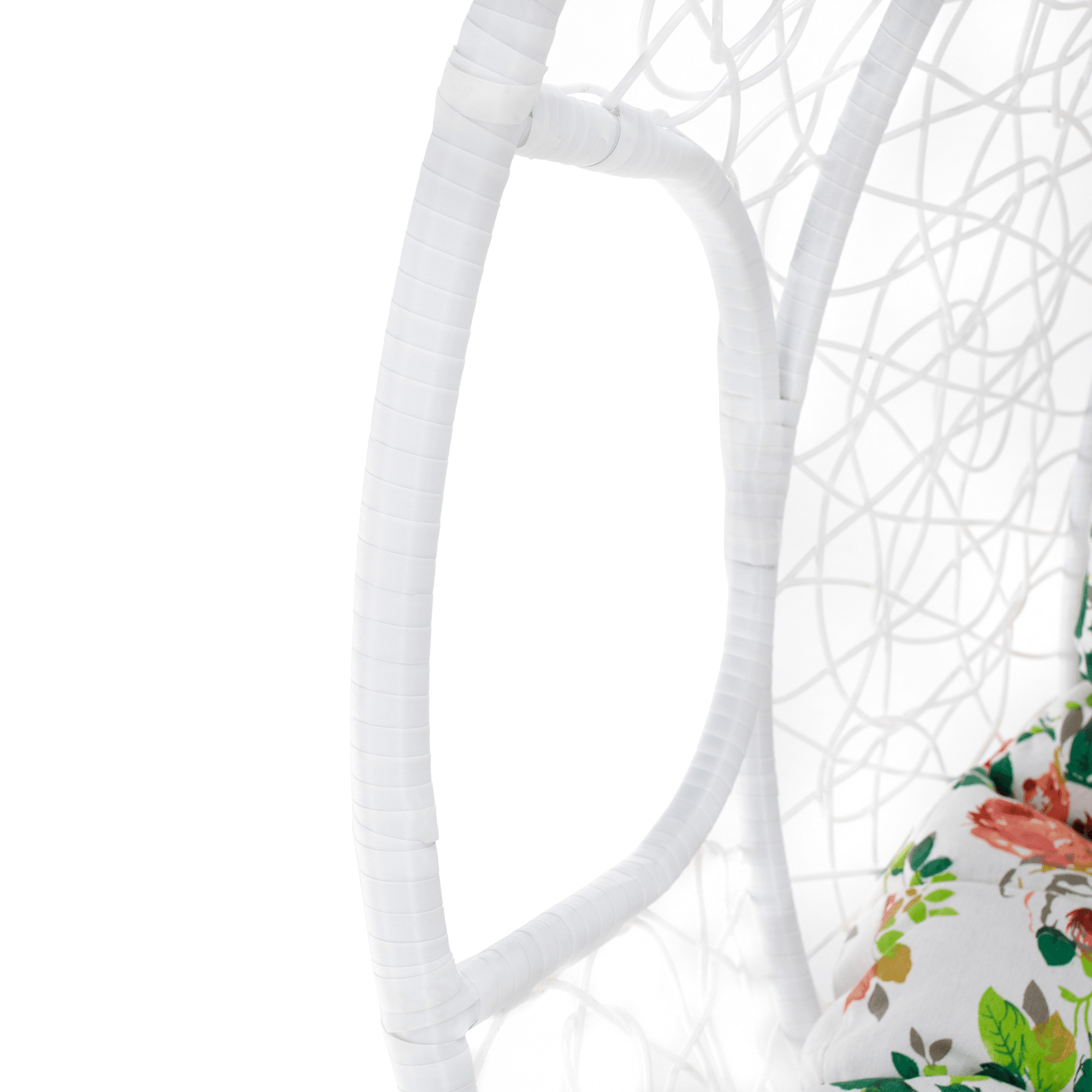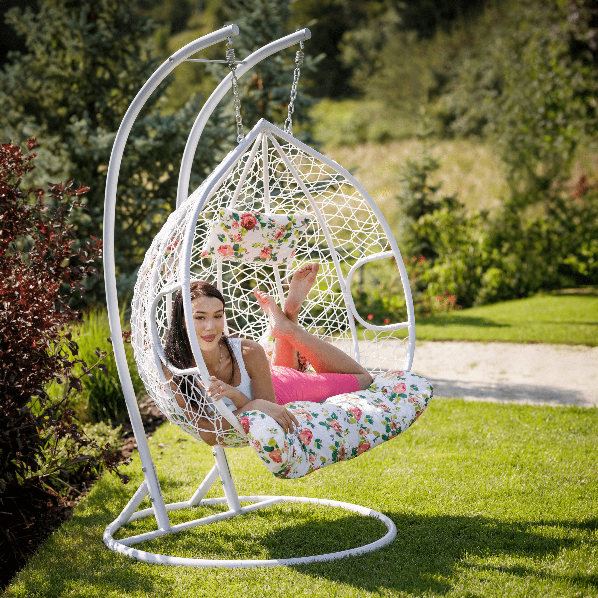 Materiál: kov/umělý ratan/látka Barva: bílá/vzor květiny Rozměry křesla (ŠxHxV): 133x117x195 cm Výška sedu: 52 cm Hloubka sedu: 70 cm Maximální nosnost: 200 kg V exteriéru doporučujeme zajistit křeslo ochranným krytem nebo plachtou Vhodné do interiéru i exteriéru S polštářem Dvojkřeslo Před praním je třeba vyjmout náplň a vyprat jen potah Potah je se zipem Snímatelný potah Pratelný při teplotě do 40 °C Nebělte Nesušit v sušičce Nežehlit Nečistěte chemicky Stojan je součást balení Kování pro závěsné křeslo se nachází přímo v rámu kruhu Dodáváno v demontu