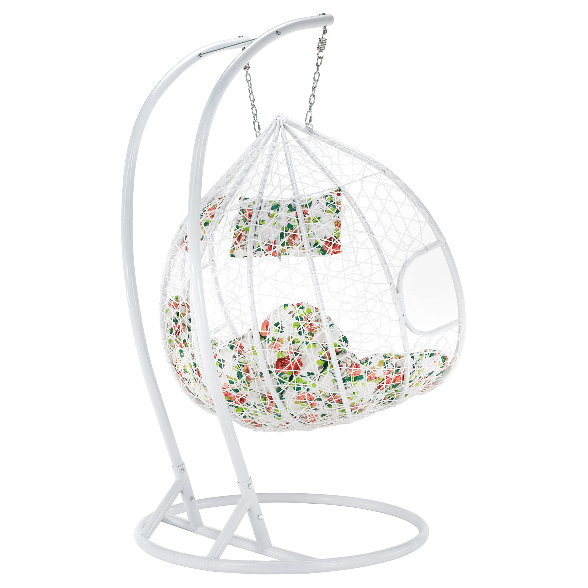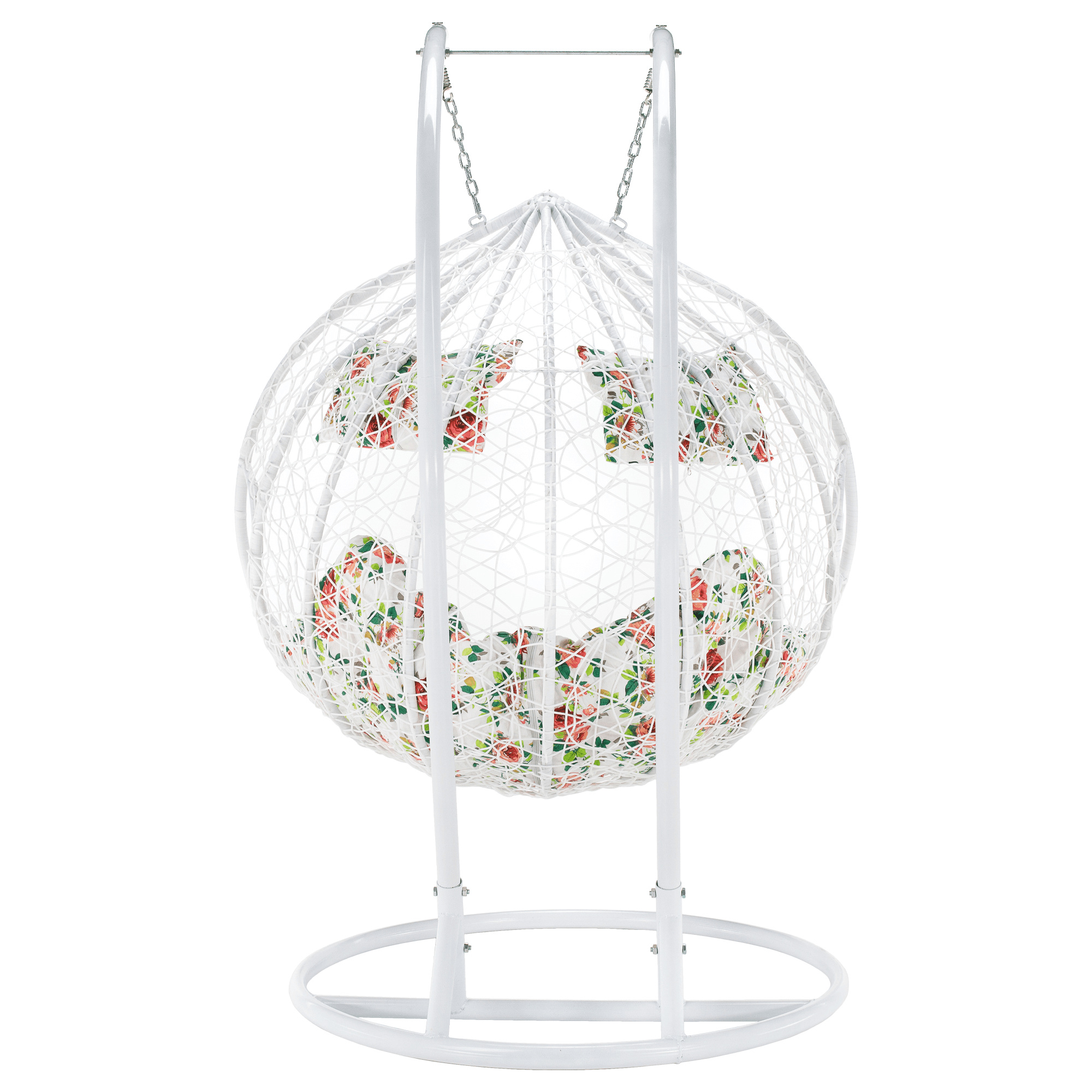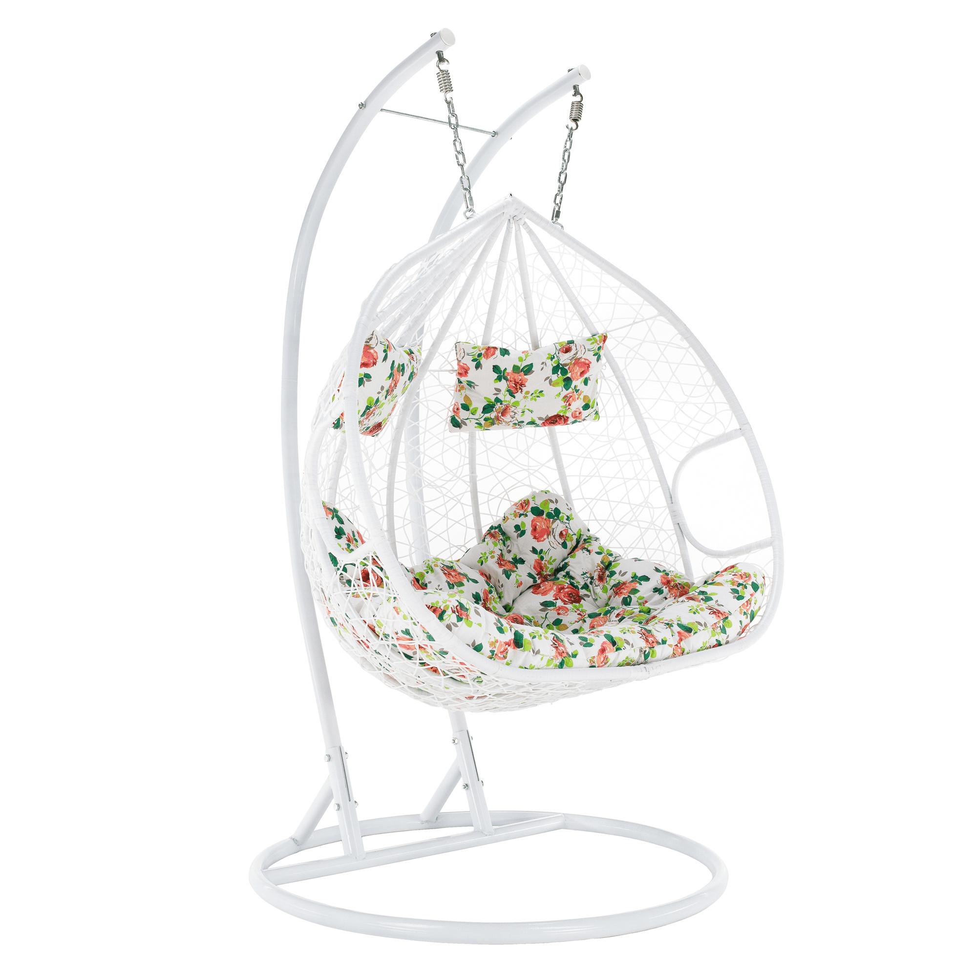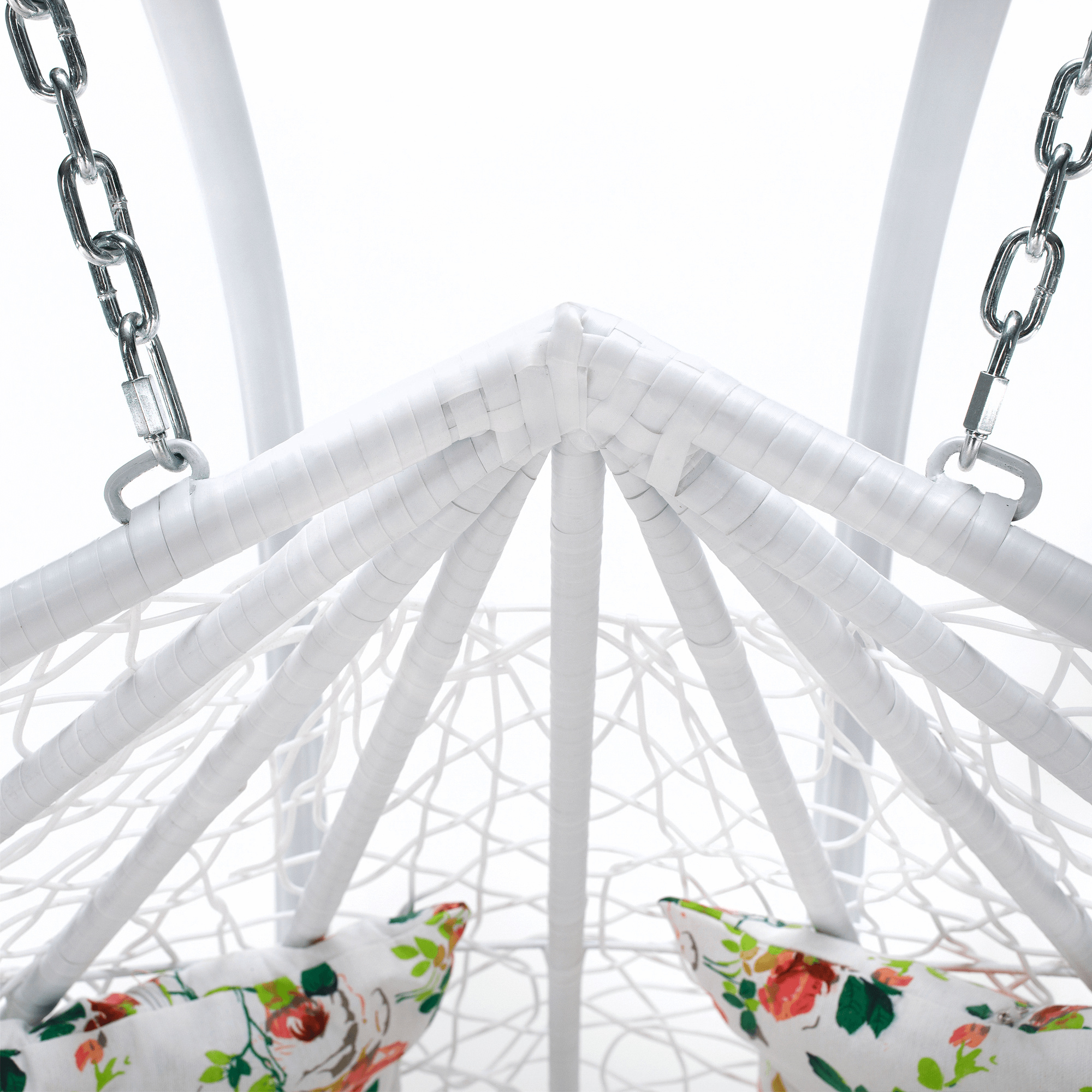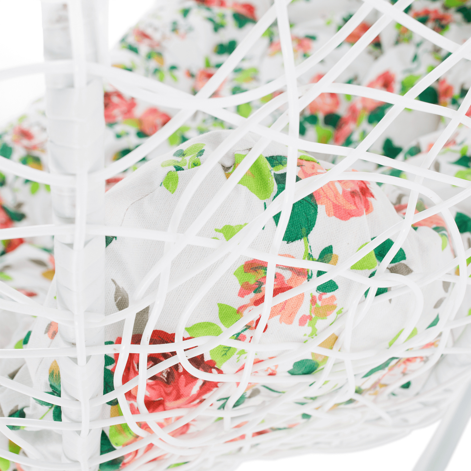 Závěsné dvojkřeslo, bílá/vzor květiny, DALVEA 2 NEW