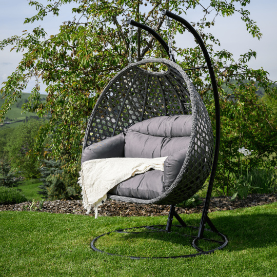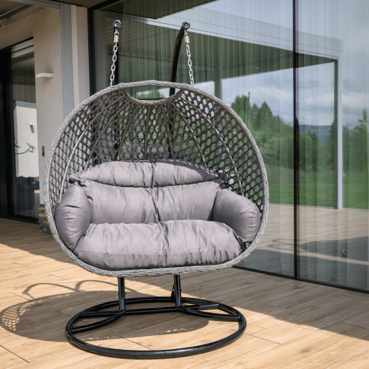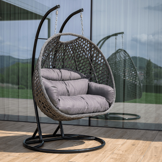 Závěsné dvojkřeslo, černá/šedá/tmavě šedá, DAKAN NEW