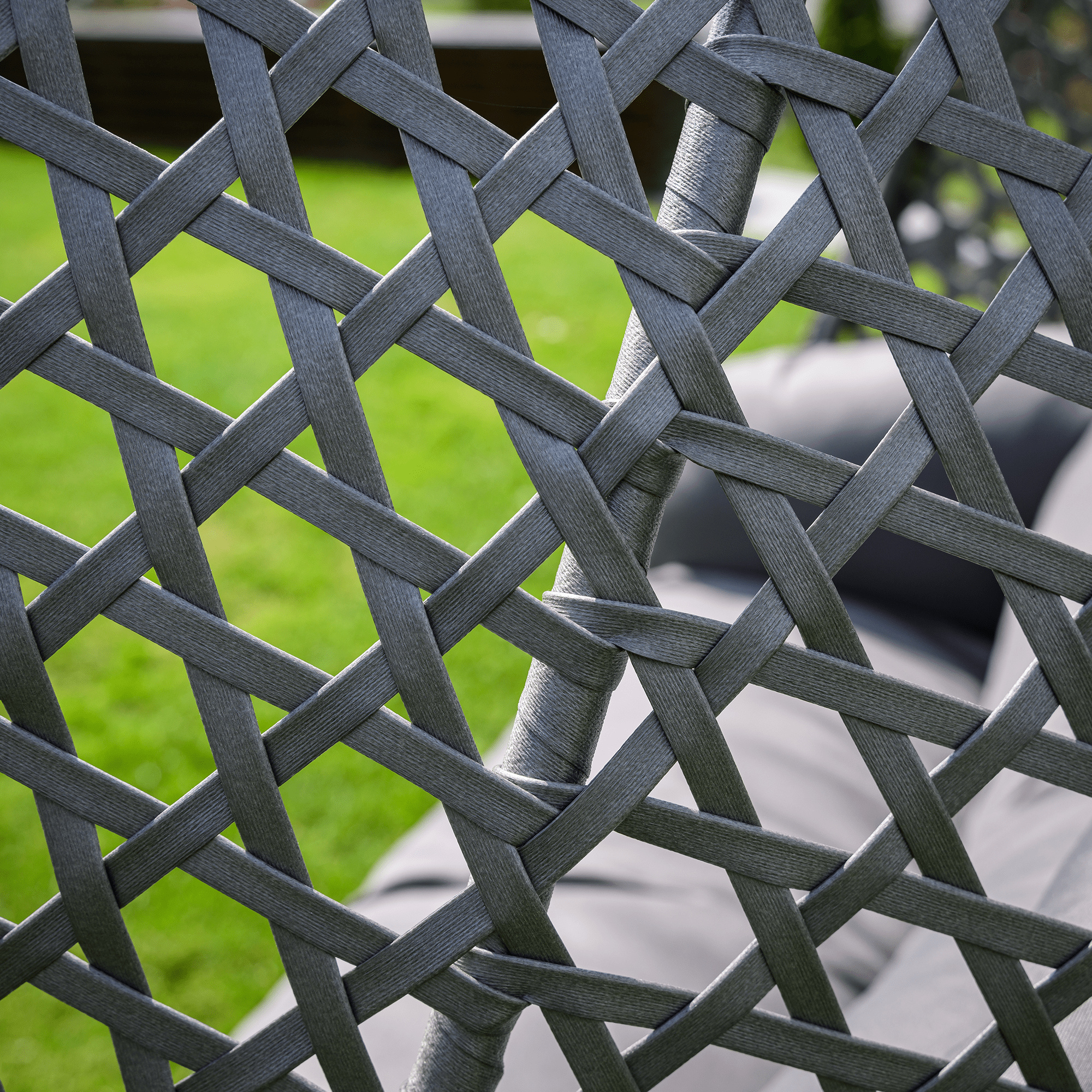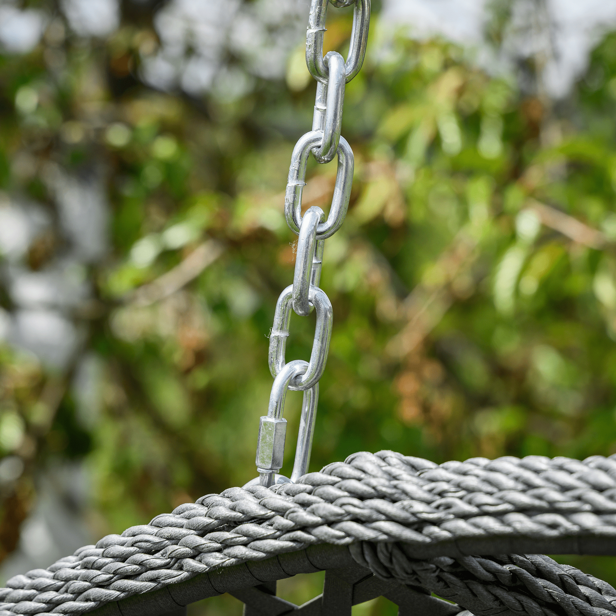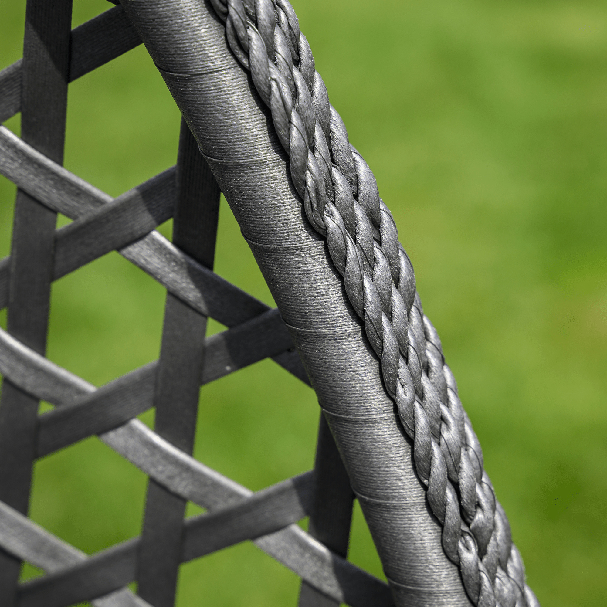 Materiál konstrukce: ocel Barva: černá Materiál křeslo: umělý ratan Barva: šedá Materiál polštáře: látka Barva: tmavě šedá Oděruodolnost textilie podle testu Martindale: 95 000 oděrů Rozměry (ŠxHxV): 137x120x192 cm Rozměry stojan (ŠxHxV): 120x120x192 cm Rozměry křeslo (ŠxHxV): 137x75x121 cm Maximální nosnost: do 200 kg V exteriéru doporučujeme zajistit křeslo ochranným krytem nebo plachtou Dodáváno se stojanem Dodáváno s polštáři Před praním je třeba vyjmout náplň a vyprat jen potah Potah je se zipem Snímatelný potah Pratelný při teplotě do 40 °C Nebělte Nesušit v sušičce Nežehlit Nečistěte chemicky Dodáváno v demontu