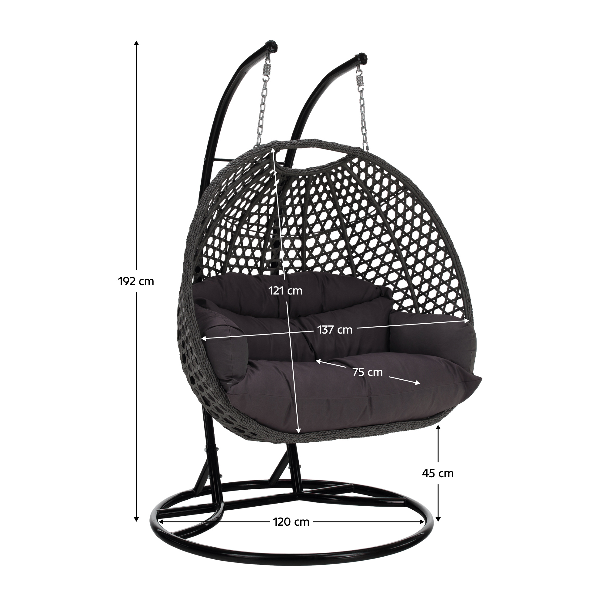 Závěsné dvojkřeslo, černá/šedá/tmavě šedá, DAKAN NEW