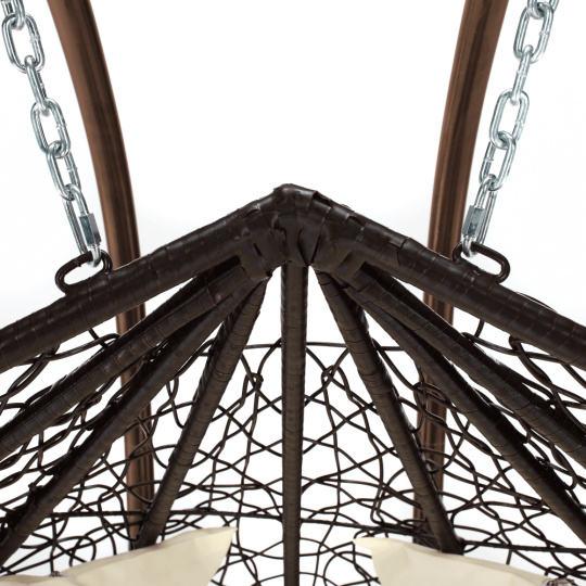 Materiál: kov/umělý ratan/látka Barva: měděná/hnědá/krémová Rozměry křesla (ŠxHxV): 133x117x195 cm Výška sedu: 52 cm Hloubka sedu: 70 cm Maximální nosnost: 200 kg V exteriéru doporučujeme zajistit křeslo ochranným krytem nebo plachtou Vhodné do interiéru i exteriéru S polštářem Před praním je třeba vyjmout náplň a vyprat jen potah Potah je se zipem Snímatelný potah Pratelný při teplotě do 40 °C Nebělte Nesušit v sušičce Nežehlit Nečistěte chemicky Dvojkřeslo Stojan je součást balení Kování pro závěsné křeslo se nachází přímo v rámu kruhu Dodáváno v demontu