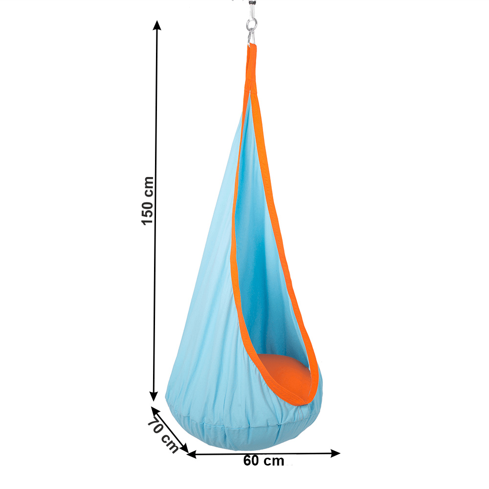 Materiál: 100% bavlna / PVC Barva: modrá / oranžová Rozměry (ŠxHxV): 60x70x150 cm Nosnost: 80 kg Doporučujeme pro děti do věku cca 10 let Dodávané v demontu.