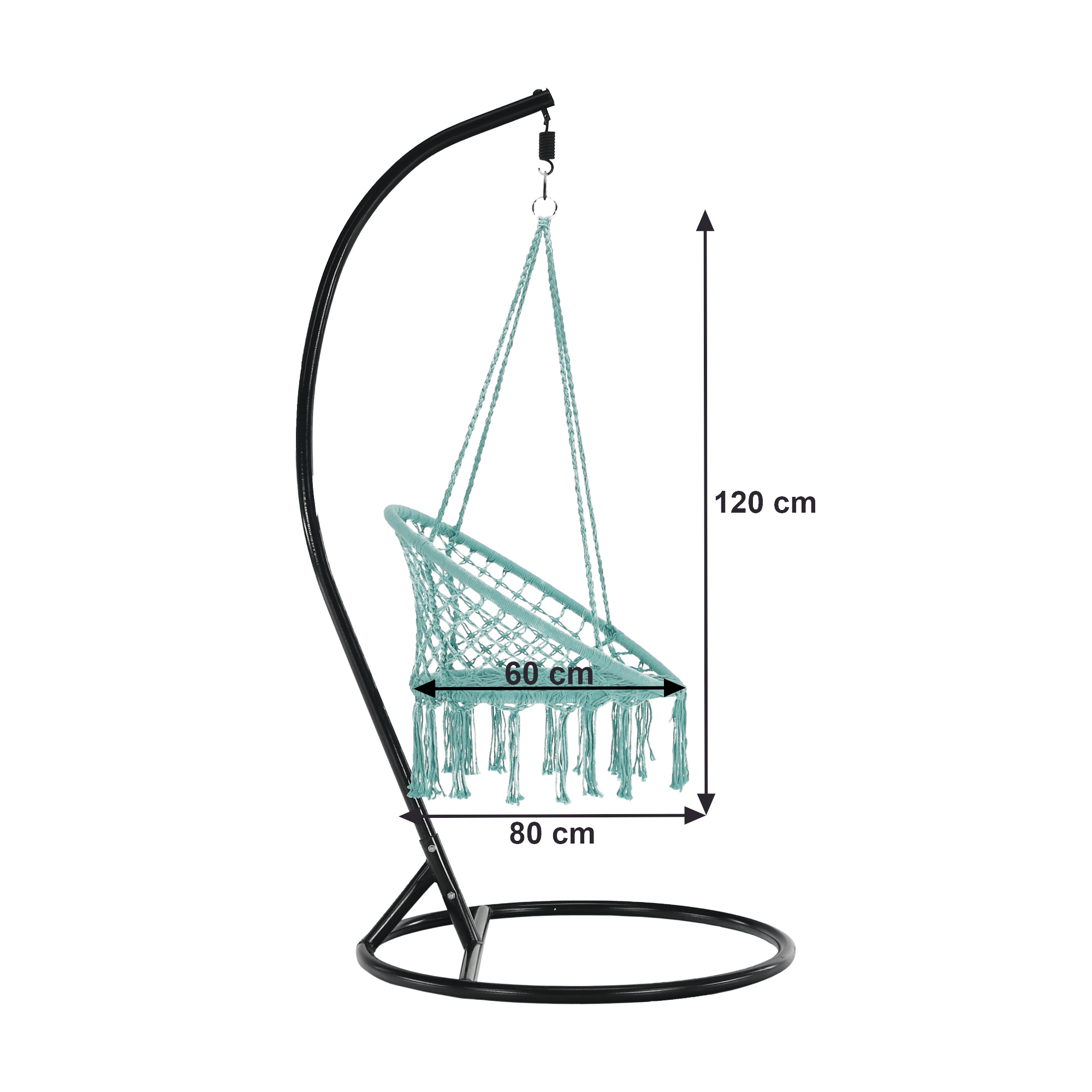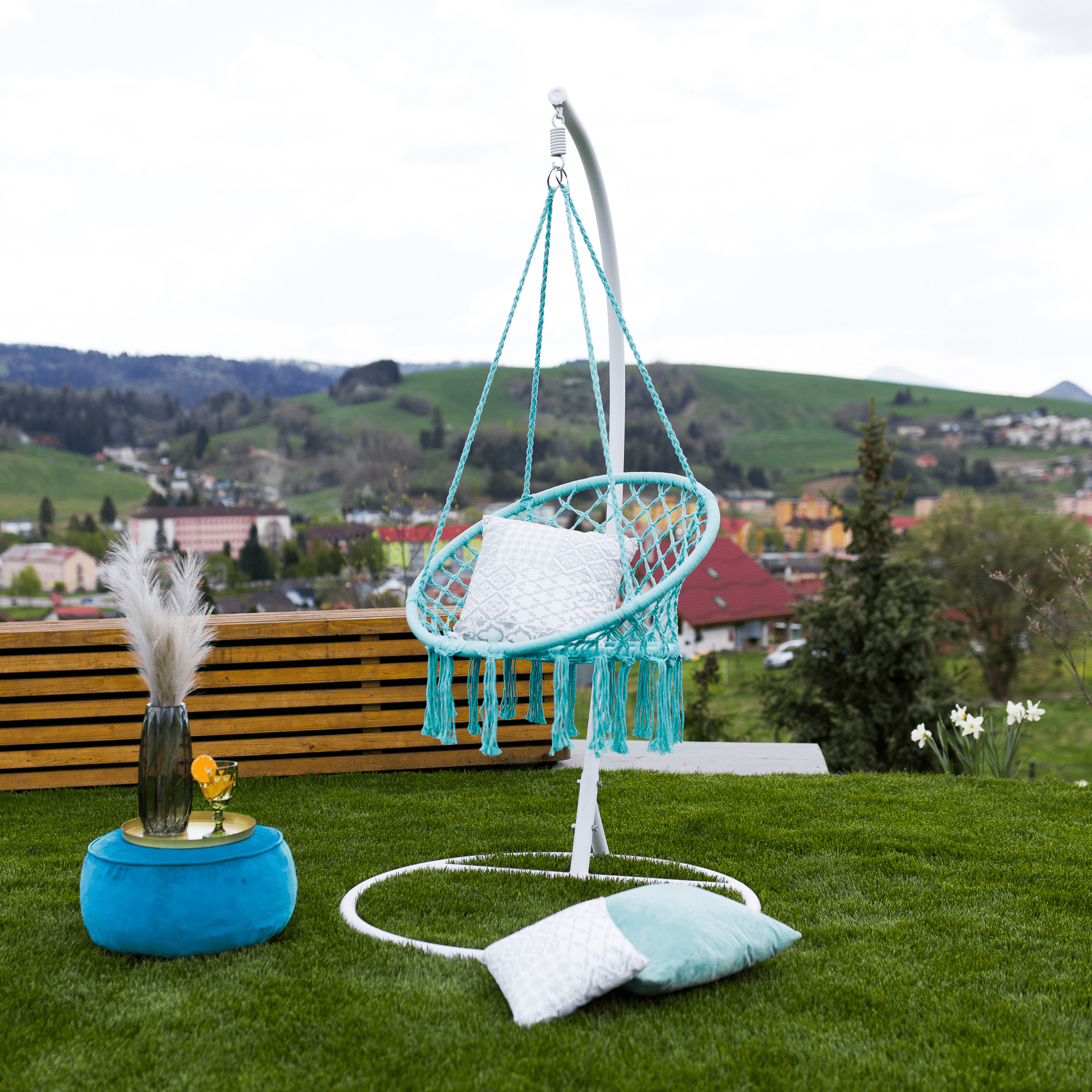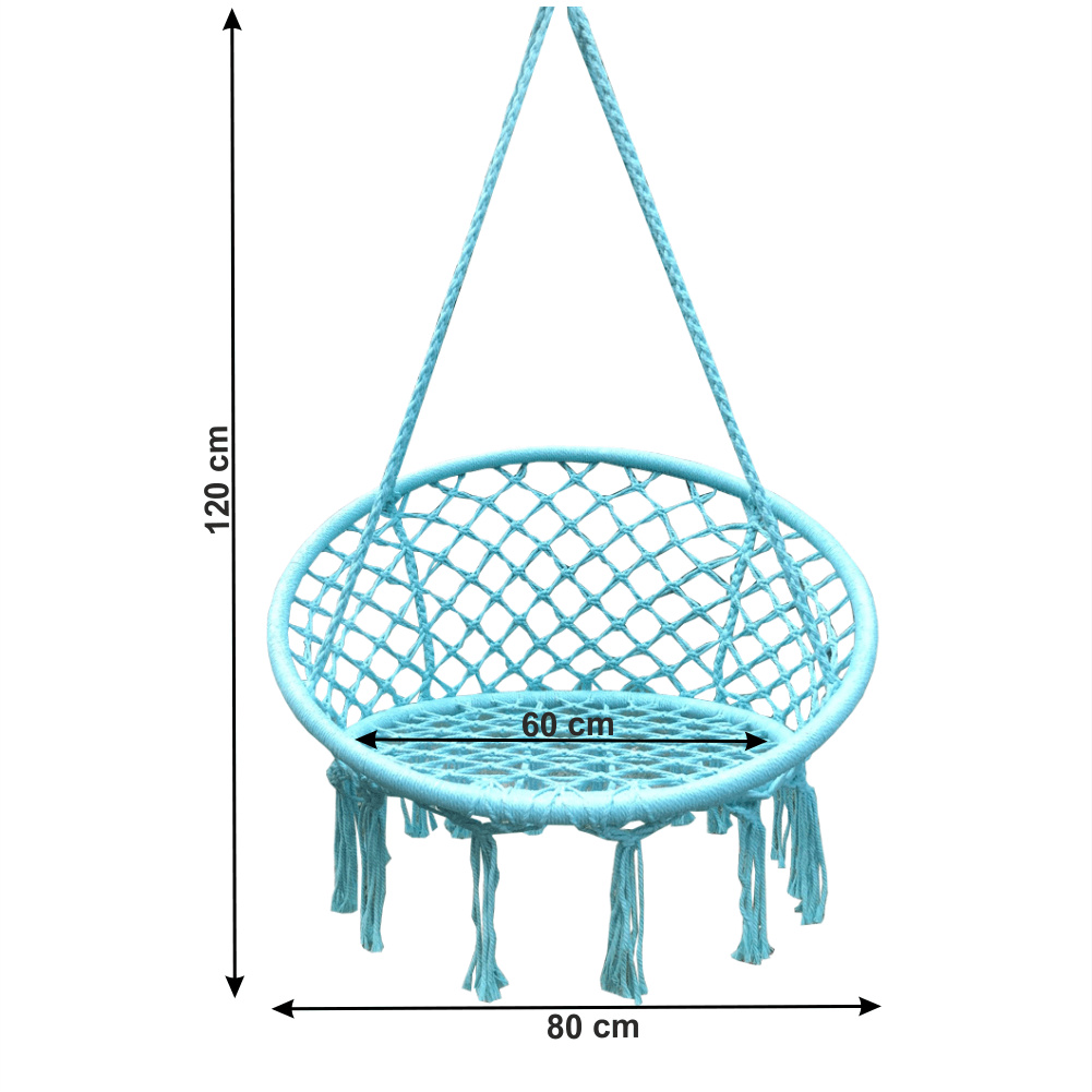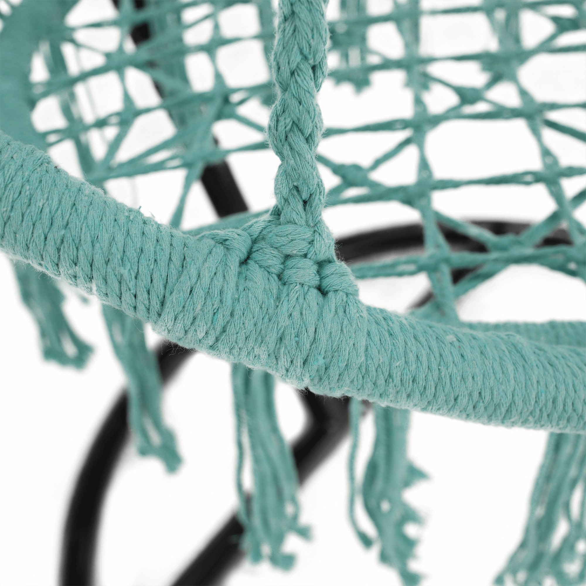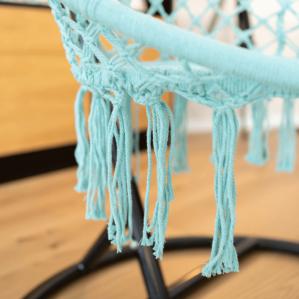 Závěsné křeslo AMADO Materiál: 100% bavlna Provedení: mentolová Rozměry (ŠxHxV): 80x120 cm Průměr ve spodní části: 60 cm Součástí balení jsou 4 závěsné lana Nosnost do 120 kg