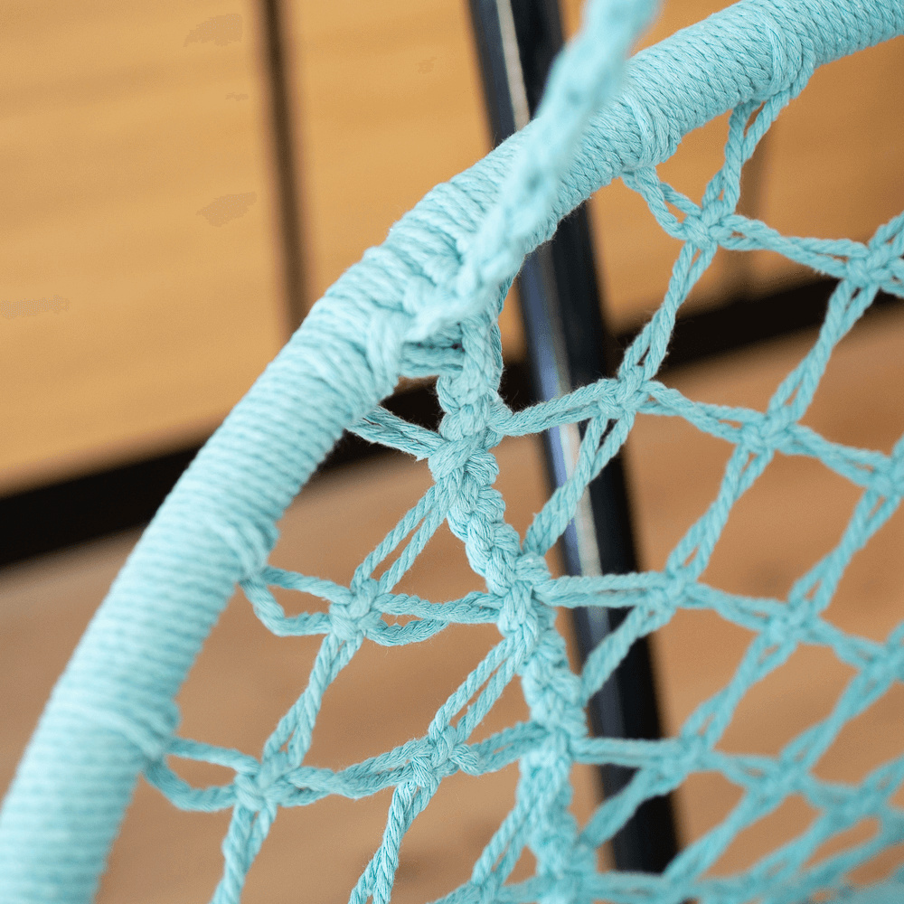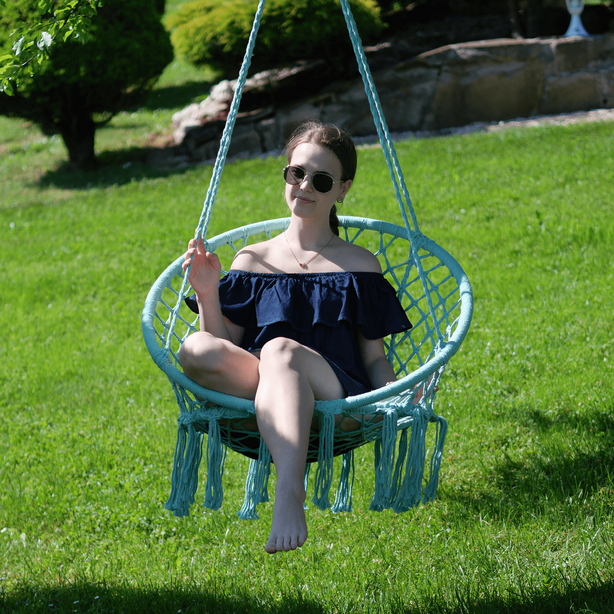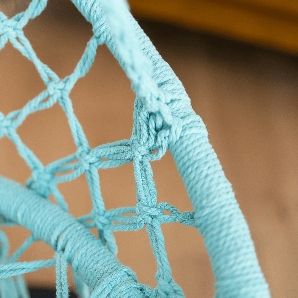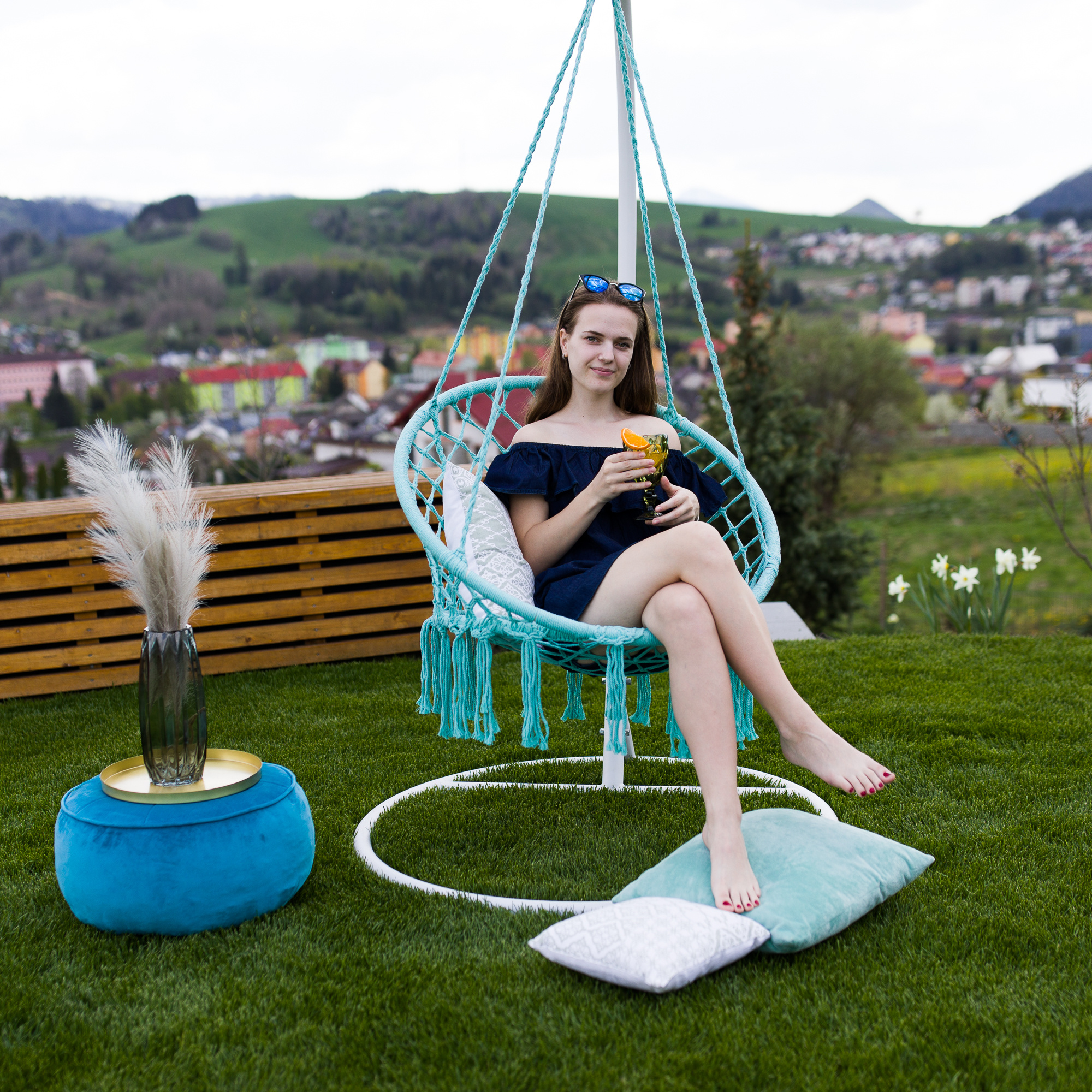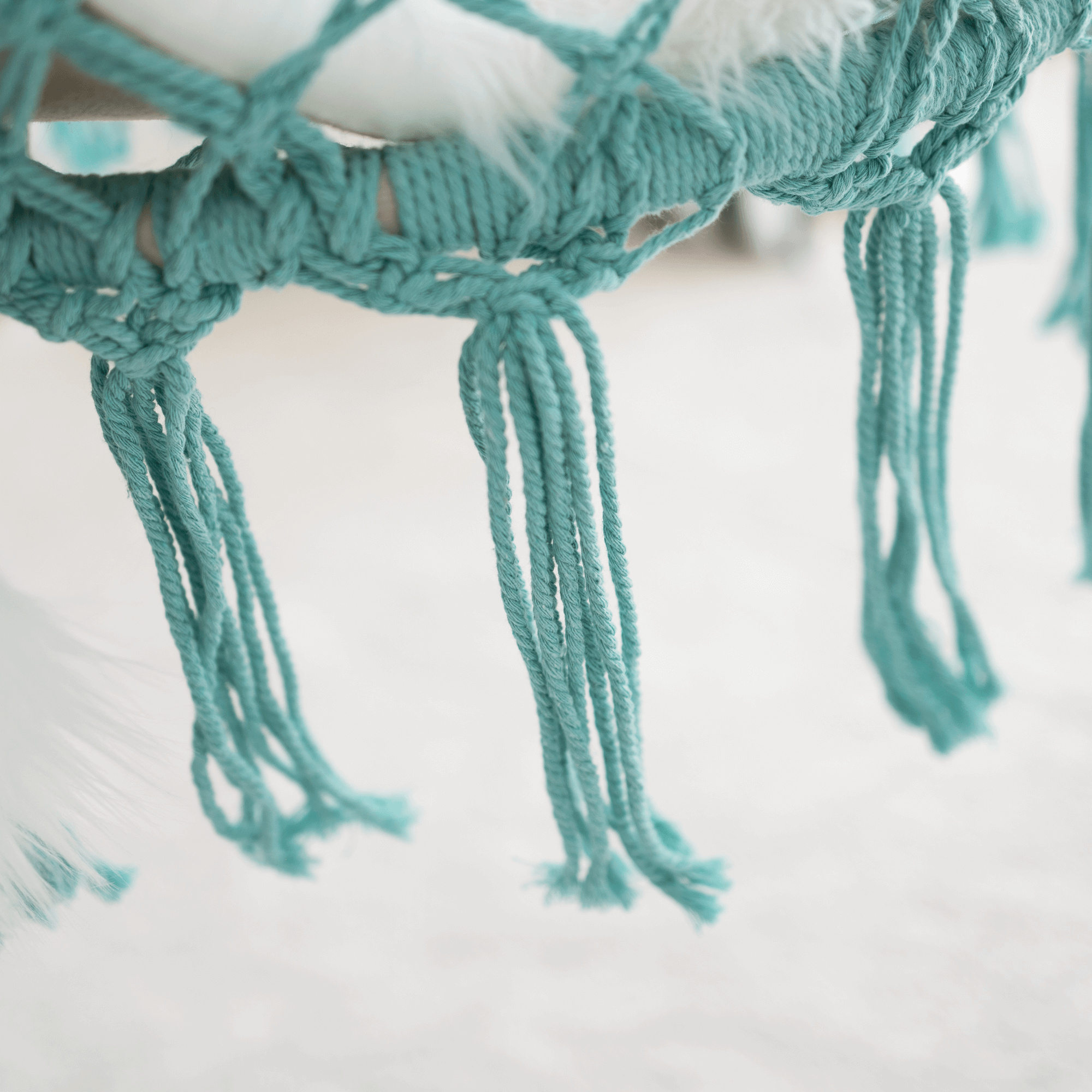 Závěsné křeslo AMADO Materiál: 100% bavlna Provedení: mentolová Rozměry (ŠxHxV): 80x120 cm Průměr ve spodní části: 60 cm Součástí balení jsou 4 závěsné lana Nosnost do 120 kg