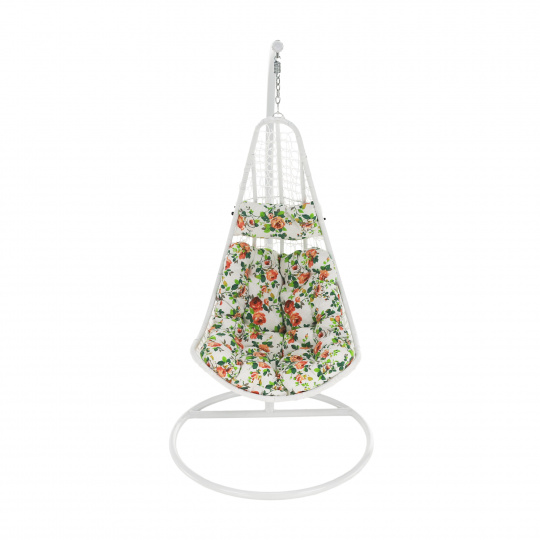 Závěsné křeslo, bílá / vzor květy, Kalea 2 NEW