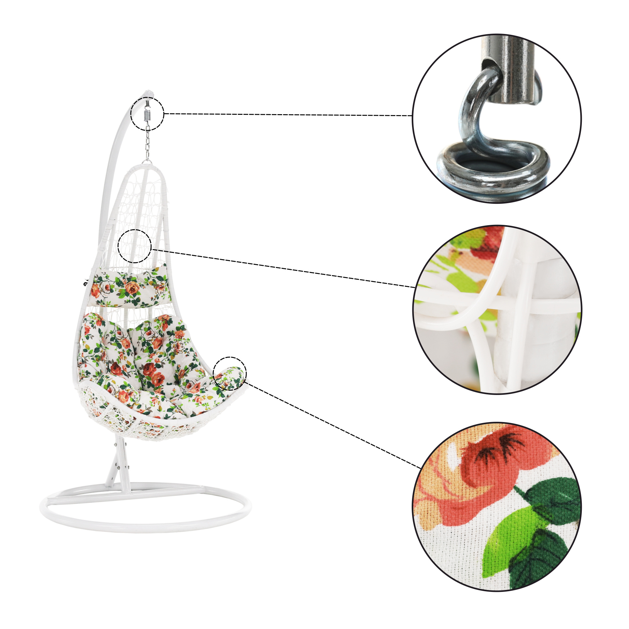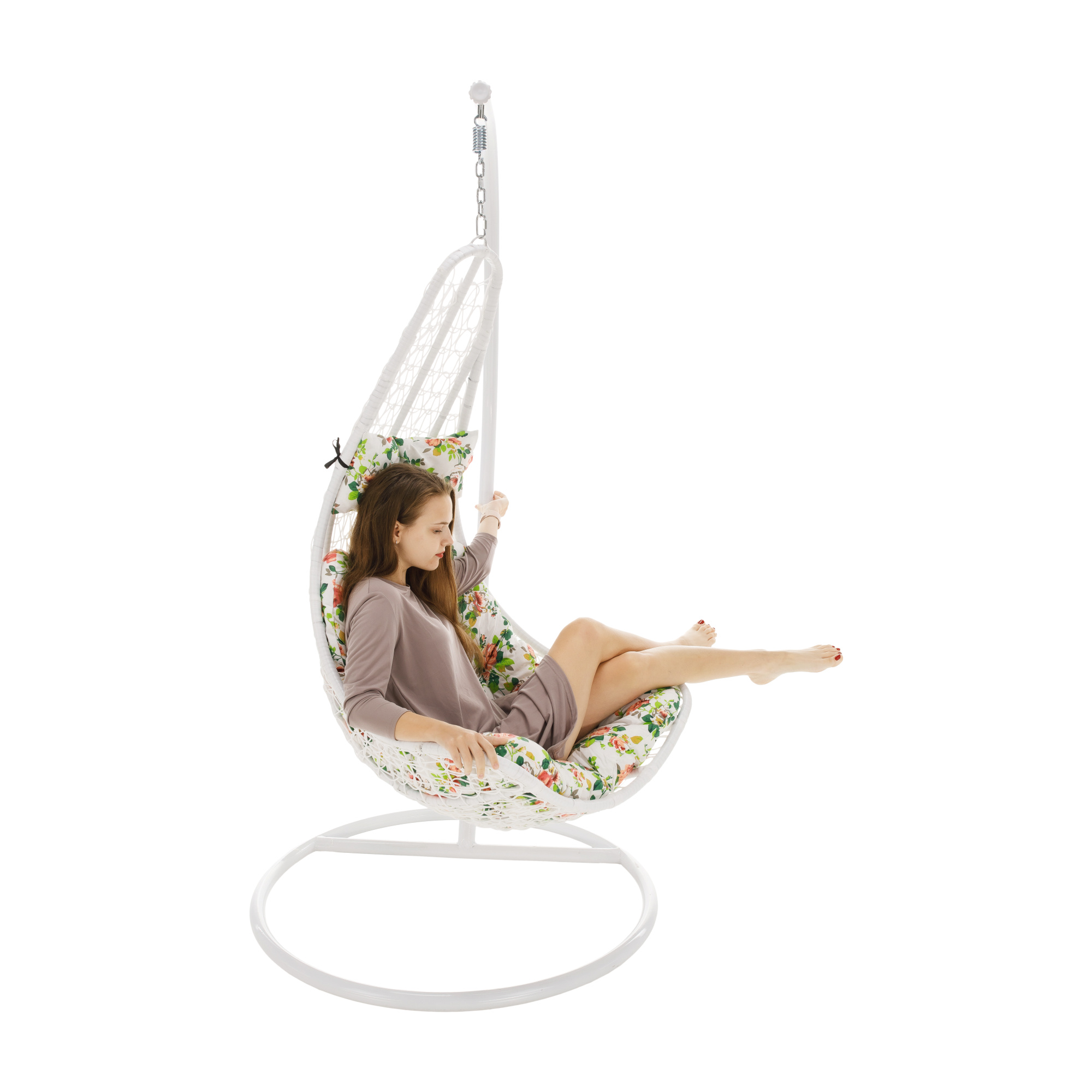 Závěsné křeslo, bílá / vzor květy, Kalea 2 NEW