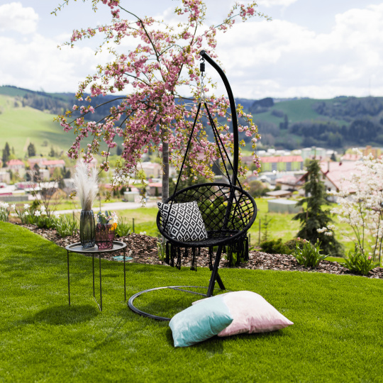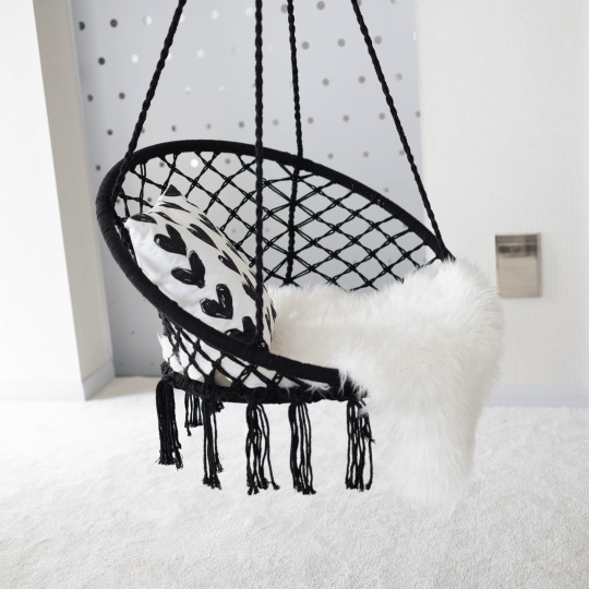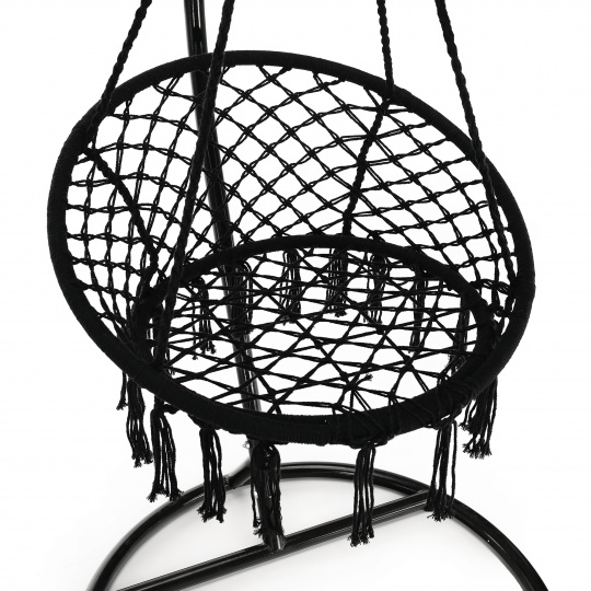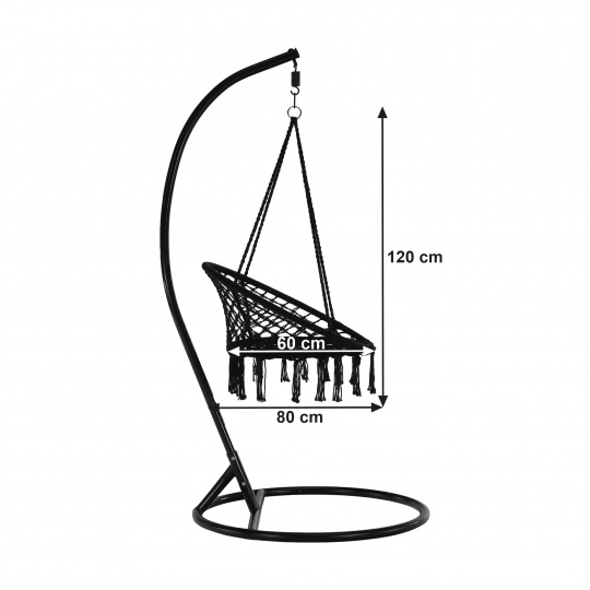 Materiál: 100% bavlna Barva: černá Rozměry (ŠxHxV): 80x120 cm 4 závěsná lana Maximální nosnost: 120 kg Vhodné do interiéru i exteriéru Stojan není součástí balení Máte-li zájem o stojan, je třeba si jej zakoupit Dodáváno v demontu